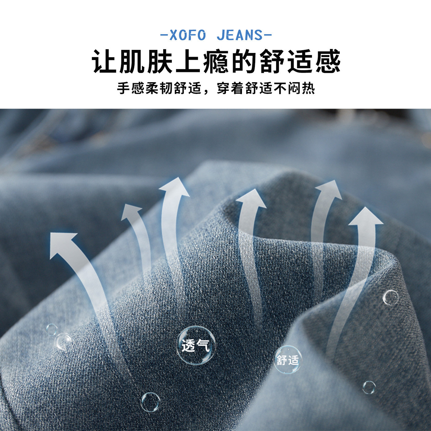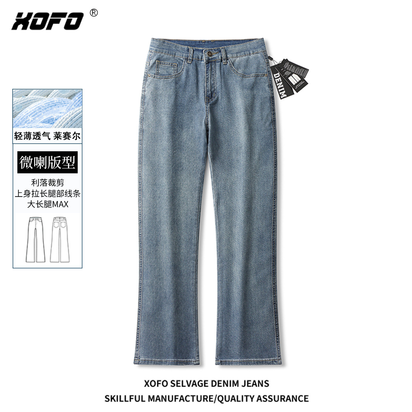 xofo新款宽松舒适微喇牛仔裤男士夏季凉感天丝超薄休闲百搭长裤子