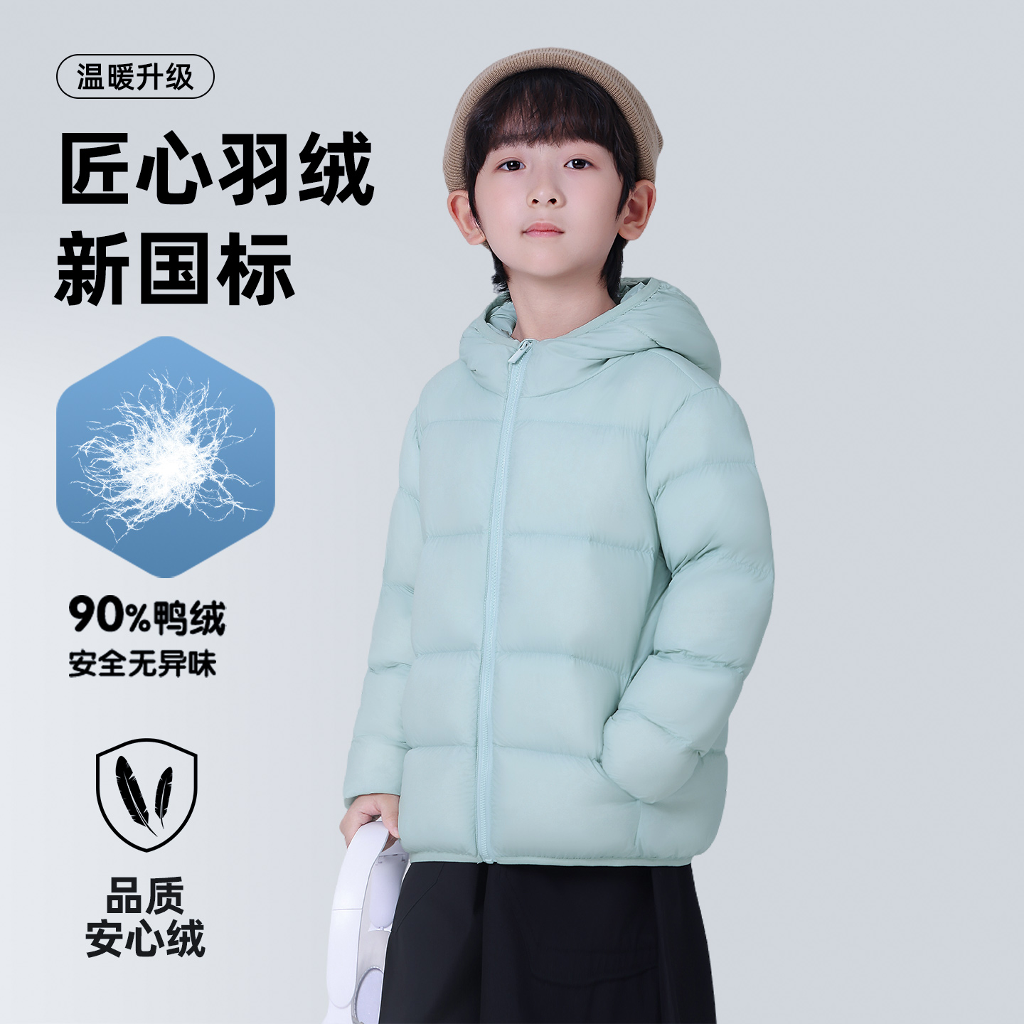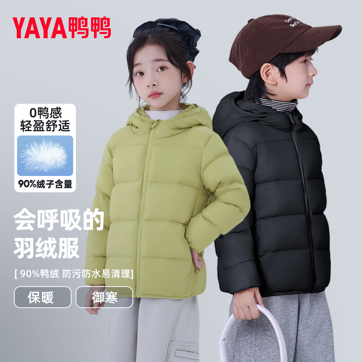 鸭鸭儿童羽绒服男女童2025秋冬季新款中小童短款面包服连帽外套KX