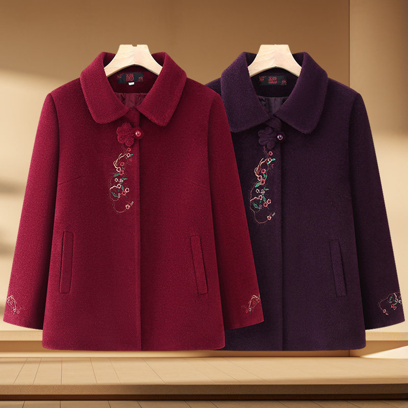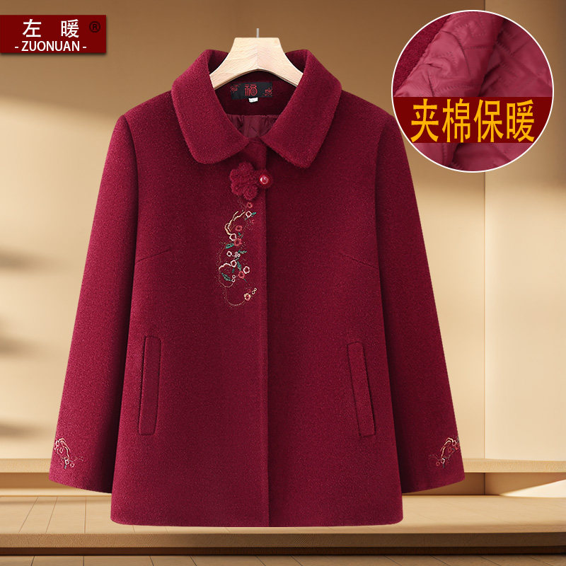奶奶秋冬装毛呢外套中老年人加厚大衣服女60-70岁妈妈老太太棉衣