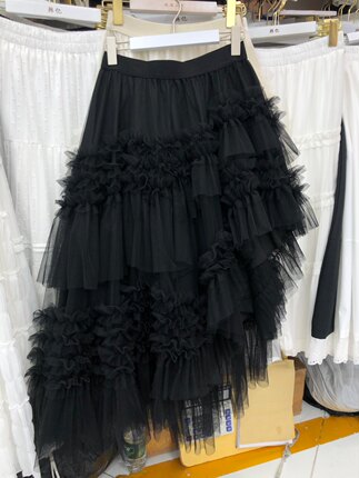 浪漫重工荷叶边网纱蓬蓬半身裙女不规则斜摆鱼尾A字蛋糕裙仙女裙