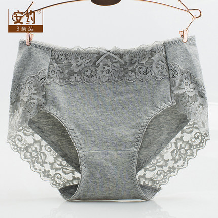 3条装中腰蕾丝纯棉三角裤棉质底裆包臀舒适无痕内裤女士舒适短裤