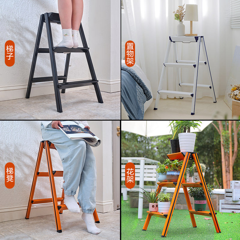瑞居小椅梯凳铝合金家用梯子多功能便携折叠室内三四步人字梯楼梯
