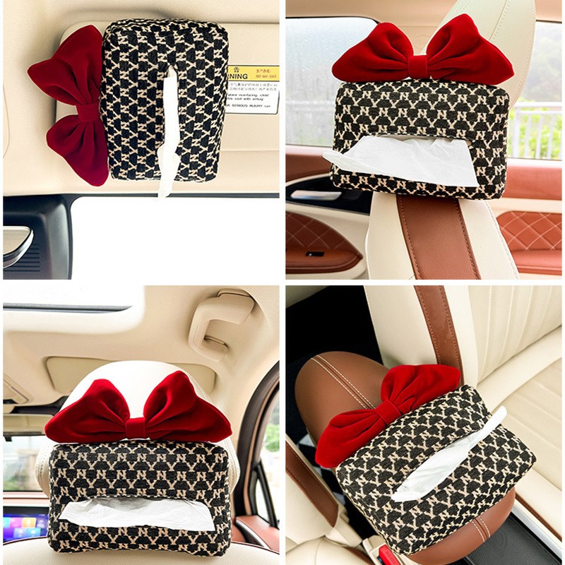 红色蝴蝶结车载纸巾盒女汽车抽纸盒车用内饰创意女神车内装饰用品