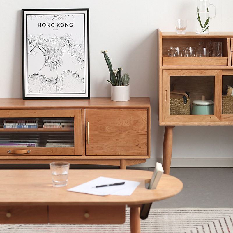 和睦电视柜樱桃木北欧风全实木客厅储物柜原木小户型家用多功能柜