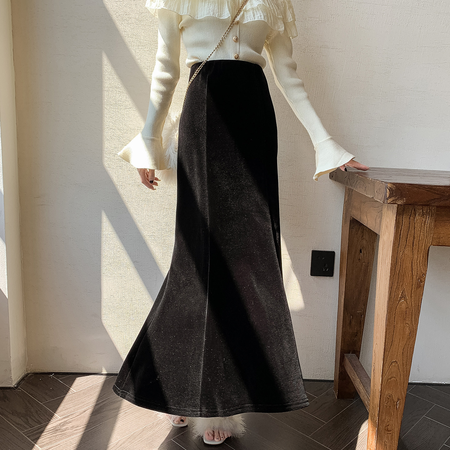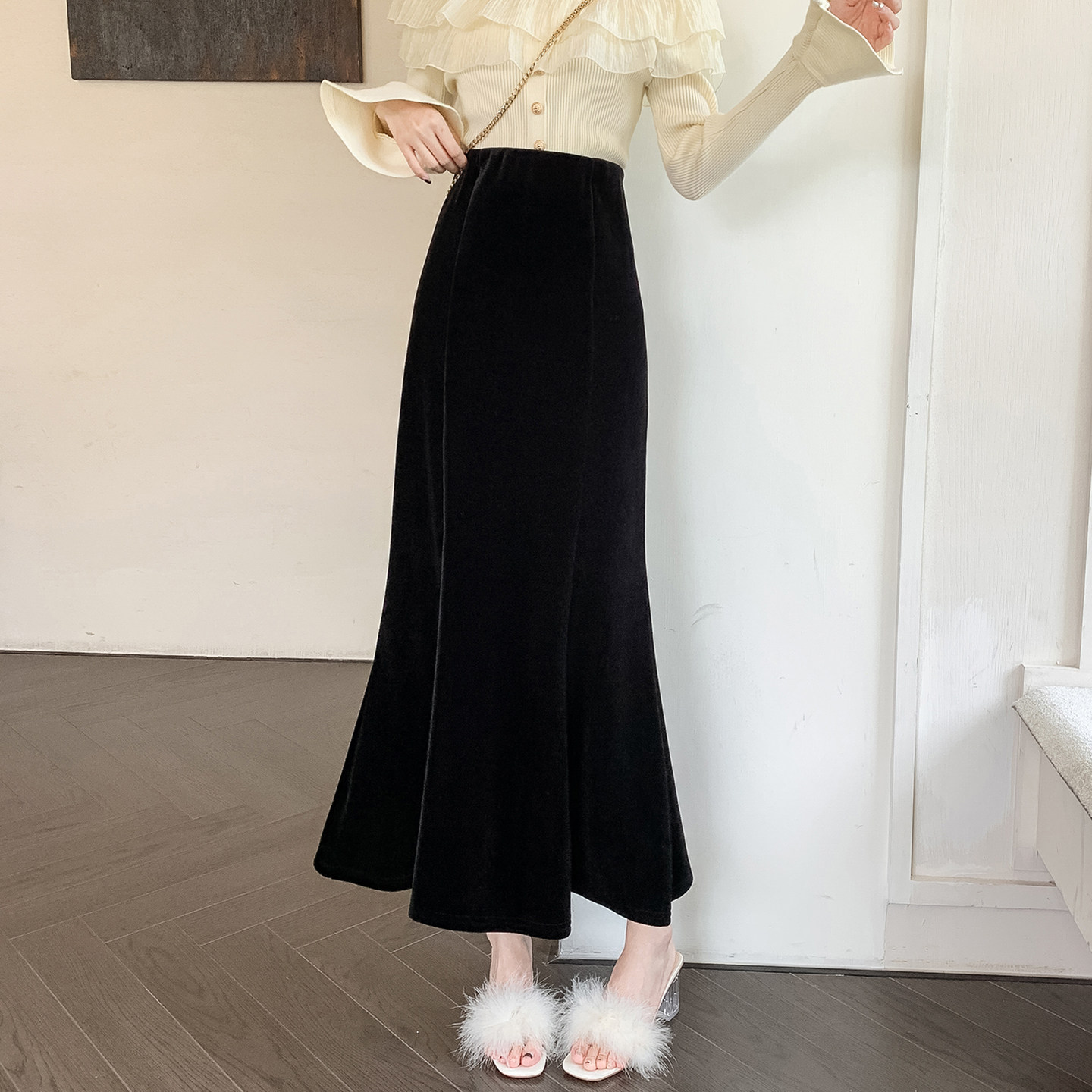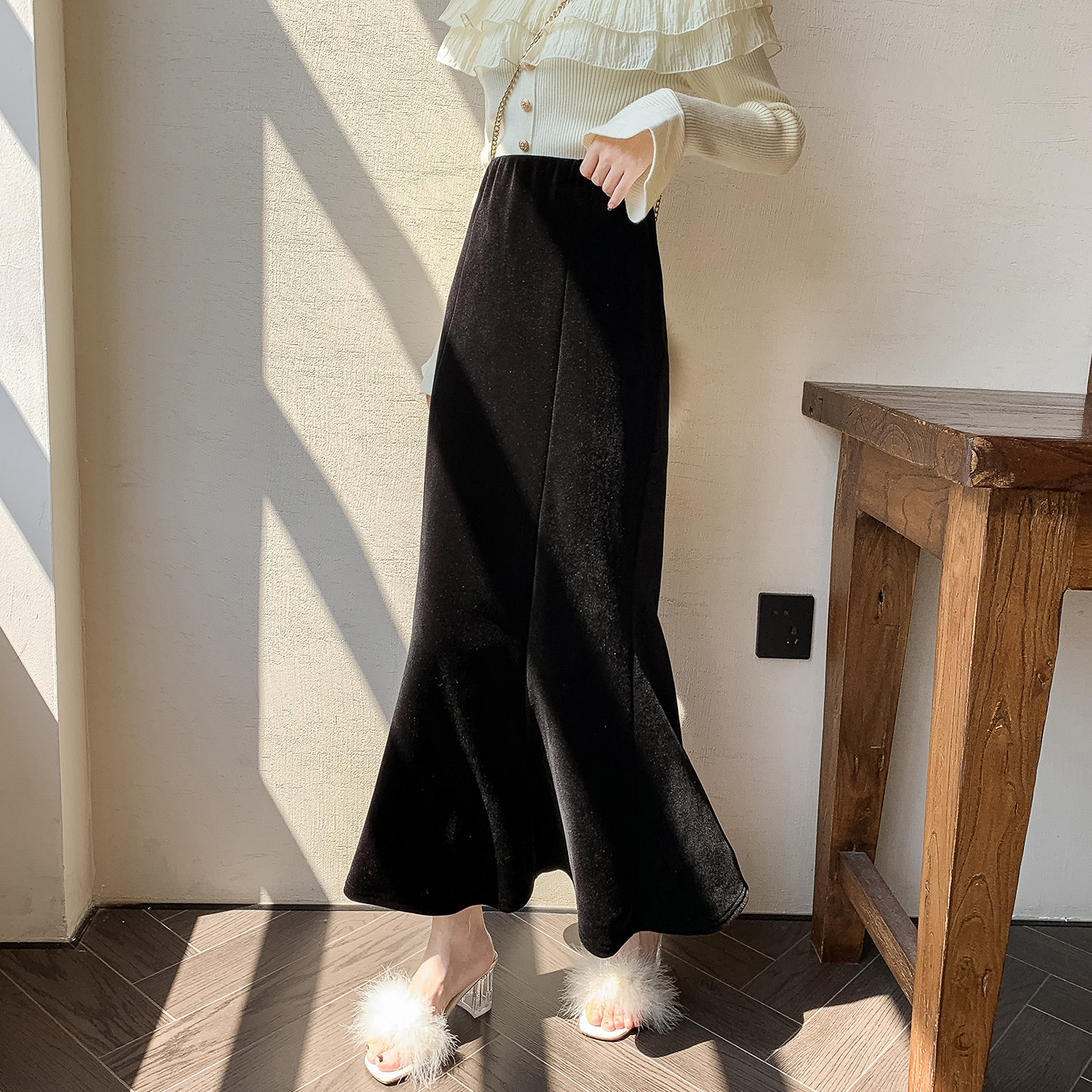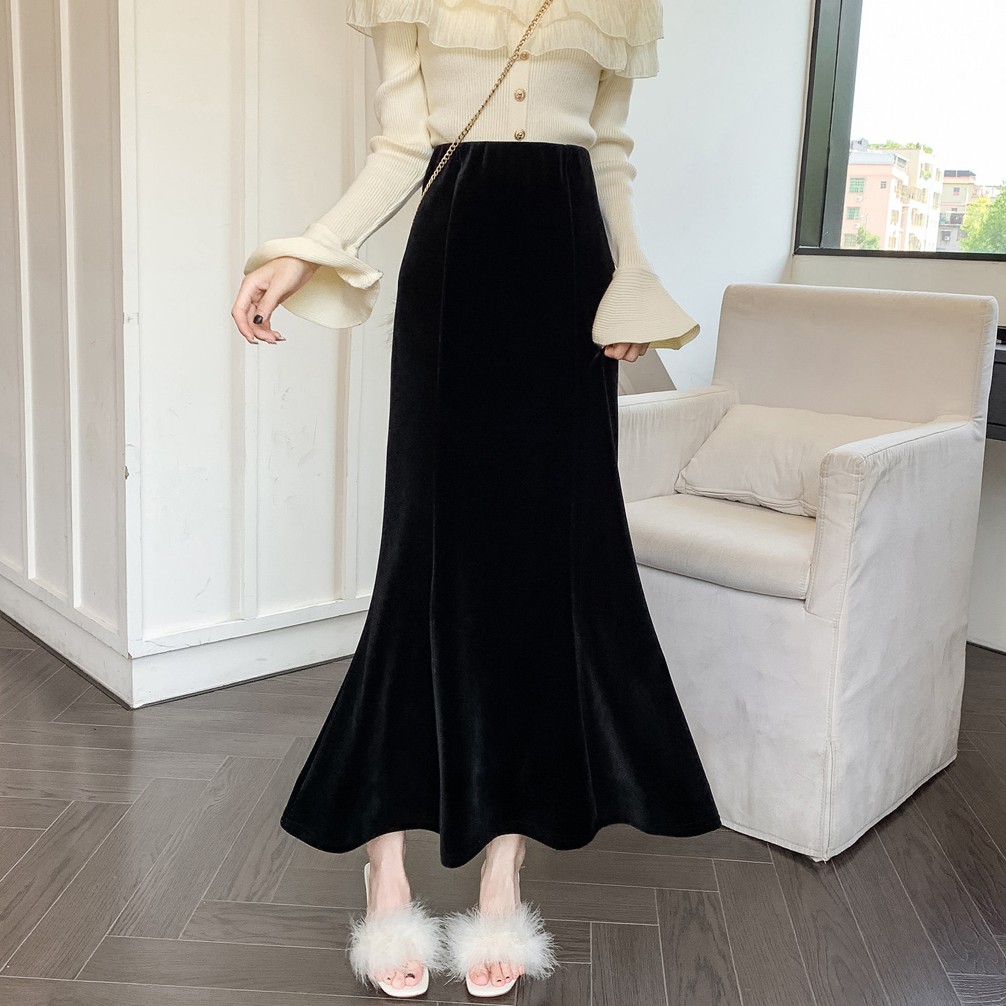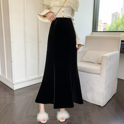 加绒加厚金丝绒鱼尾裙半身长裙女