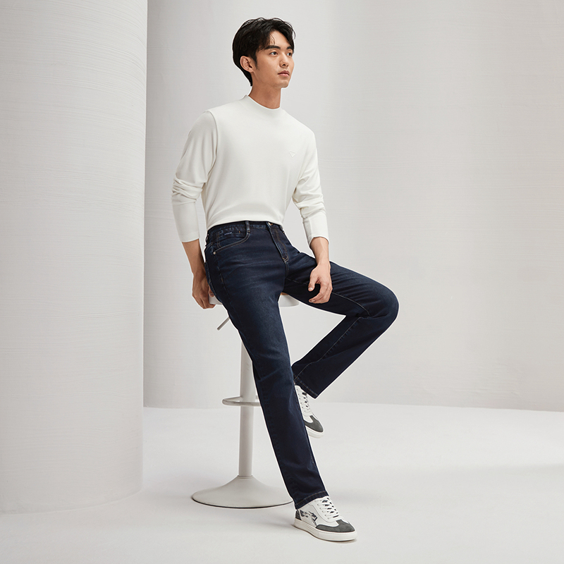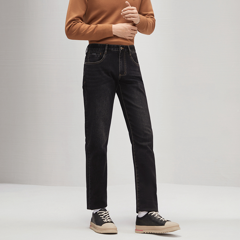 【热熔岩】柒牌直筒牛仔裤男秋冬新款商务休闲水洗中腰长裤子