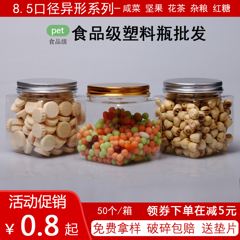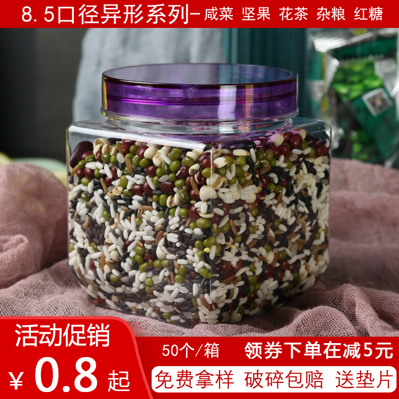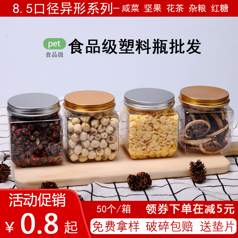 方形塑料瓶带盖四方食品级透明一斤装辣酱杂粮包装瓶子铝盖密封罐