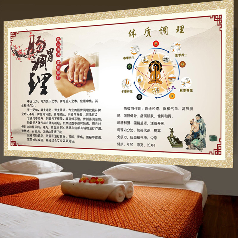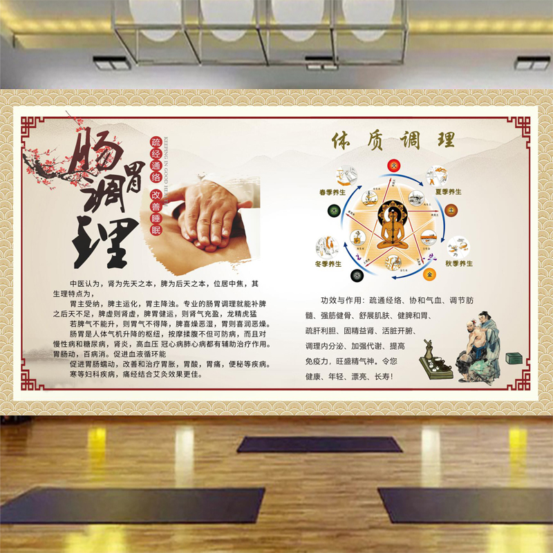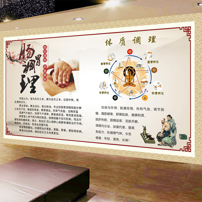 中医馆肠胃调理墙纸肠胃理疗体质辨识背景壁画诊所养生馆壁纸定制