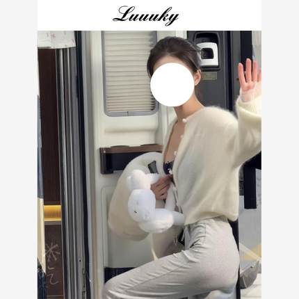 情人赵露丝阮璇同款软糯马海毛蕾丝袖口针织开衫女士毛衣夹克潮