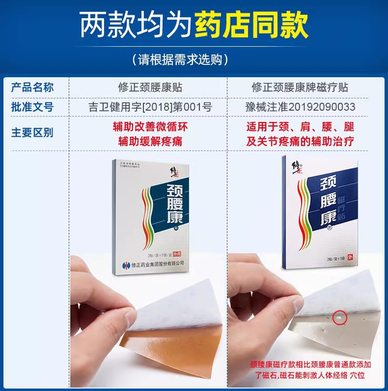 修正牌颈腰康贴磁疗贴颈肩腰腿关节疼痛辅助治疗大药房旗舰店膏贴