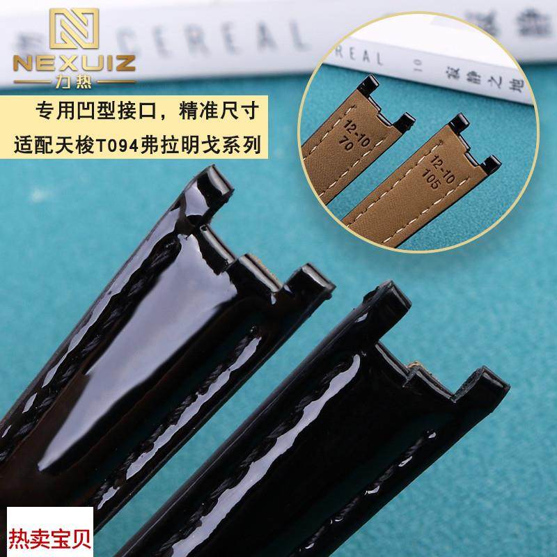 适用原装天梭1853T094弗拉明戈真皮手表带T094210女表链凹口皮带1