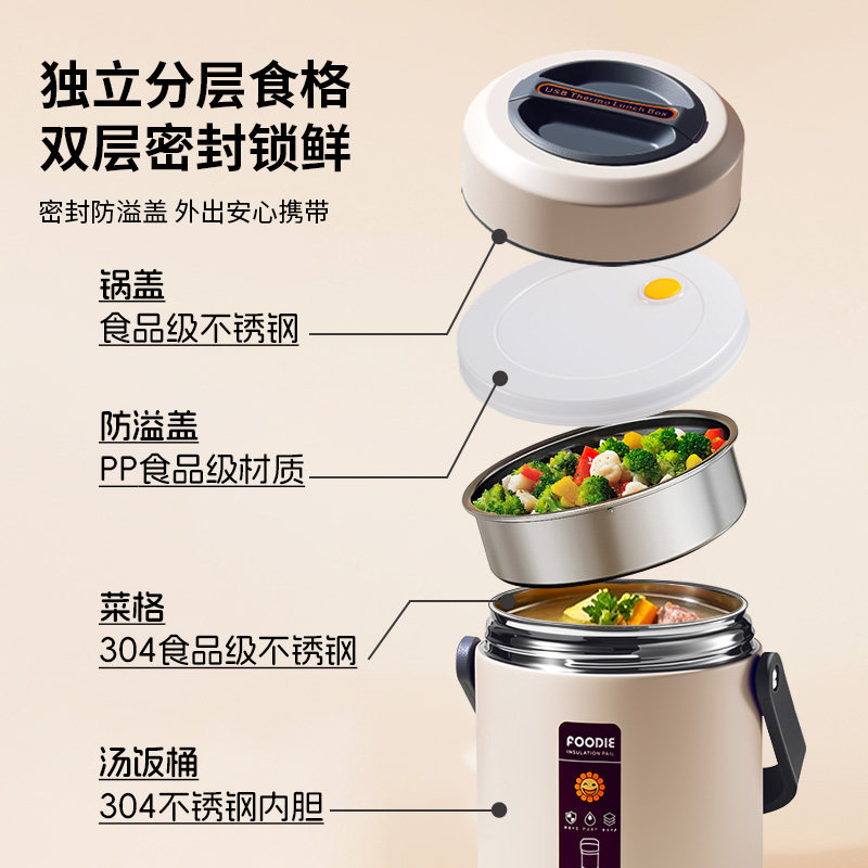 保温饭盒自带可插电加热保温桶24小时超长上班族大容量车载提桶壶
