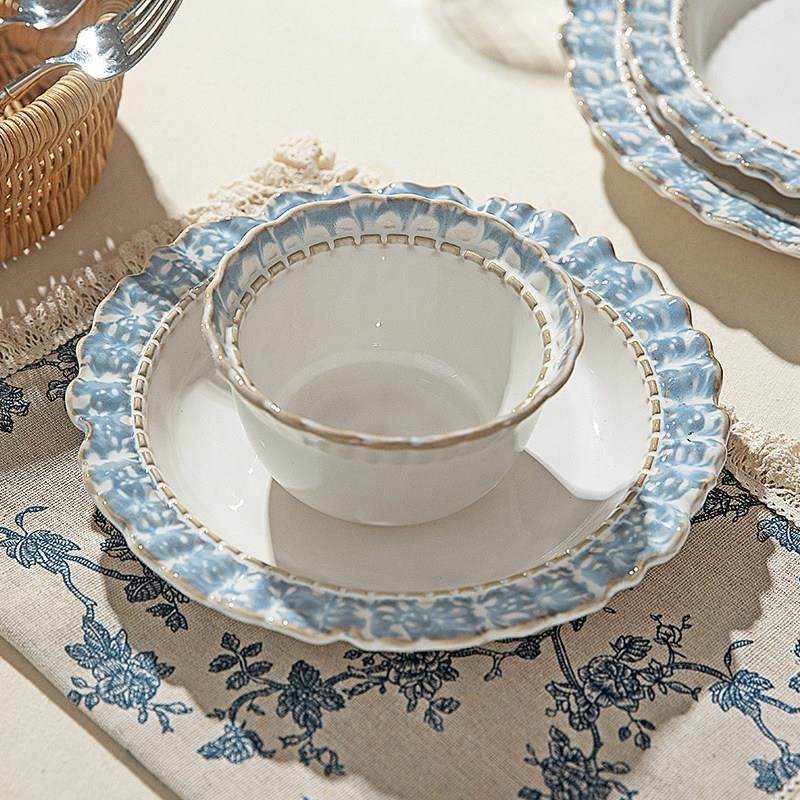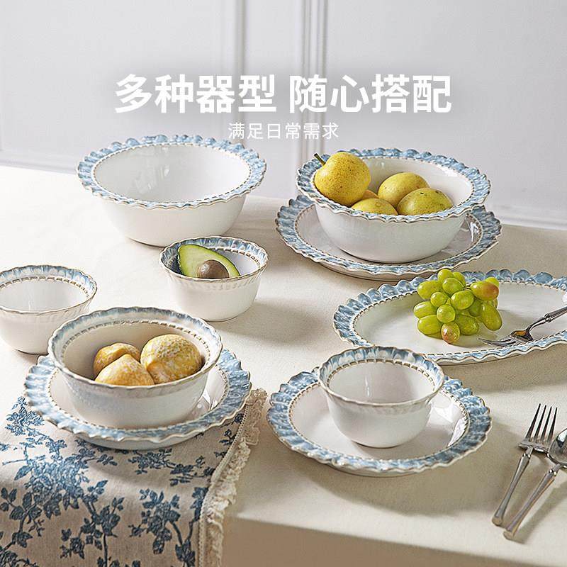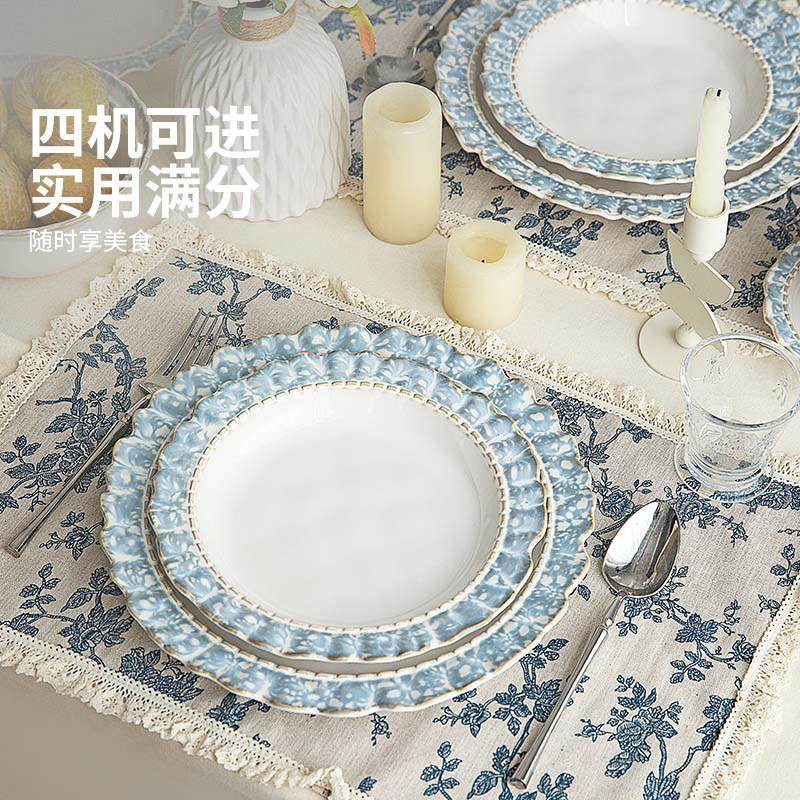 摩登主妇烟蓝陶瓷碗盘餐具家用2025新款米饭碗高级感轻奢碗筷套装