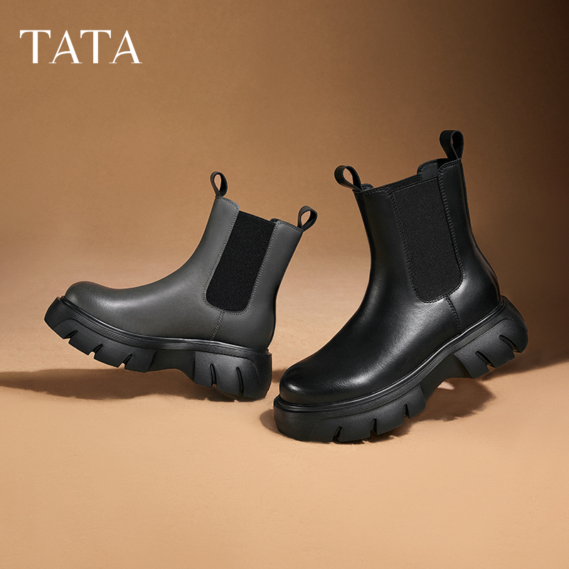 TATA他她英伦厚底切尔西靴女加绒烟筒靴短靴子冬季鞋子CGS02DD4