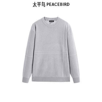 太平鸟男装毛衣冬季雪尼尔保暖针织衫潮牌撞色缝线圆领套头毛衣