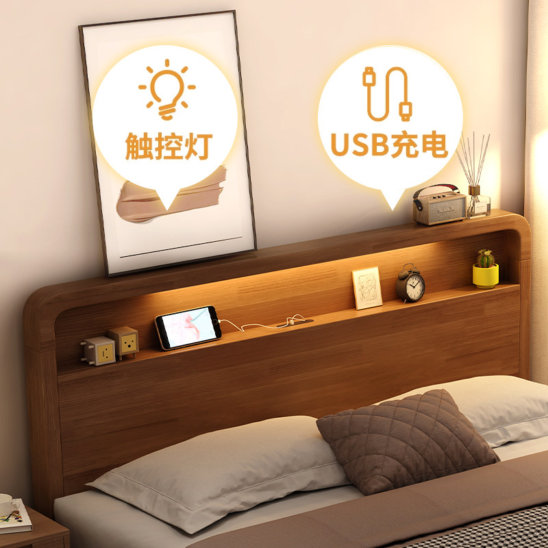 全友家居北欧简约实木床 1.5m双人床架带储物空间 橡胶木床组