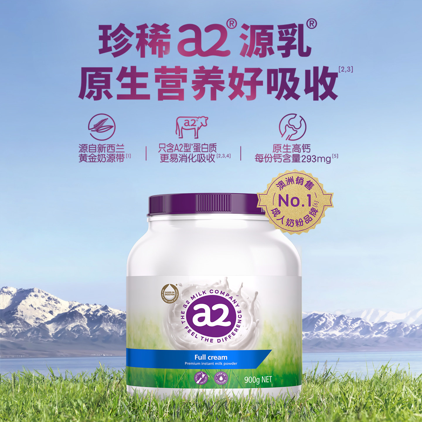 进口a2紫吨吨成人高钙全脂奶粉高蛋白全家女士中老年学生900g*1罐