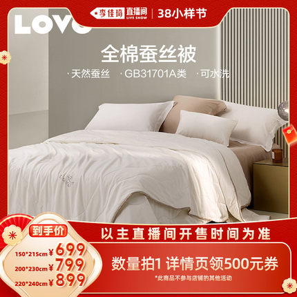 【李佳琦直播间】罗莱生活LOVO乐蜗家纺蚕丝被二合一全棉可水洗