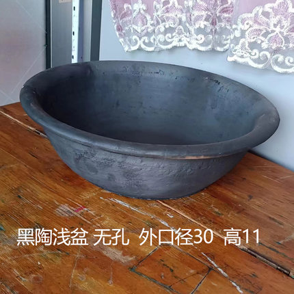 手工泥瓦盆黑陶浅盆绿植盆景盆中式土窑老式花盆风俗用品老人盆