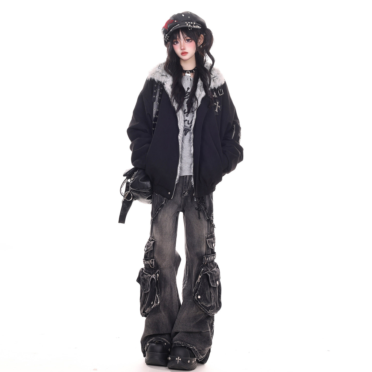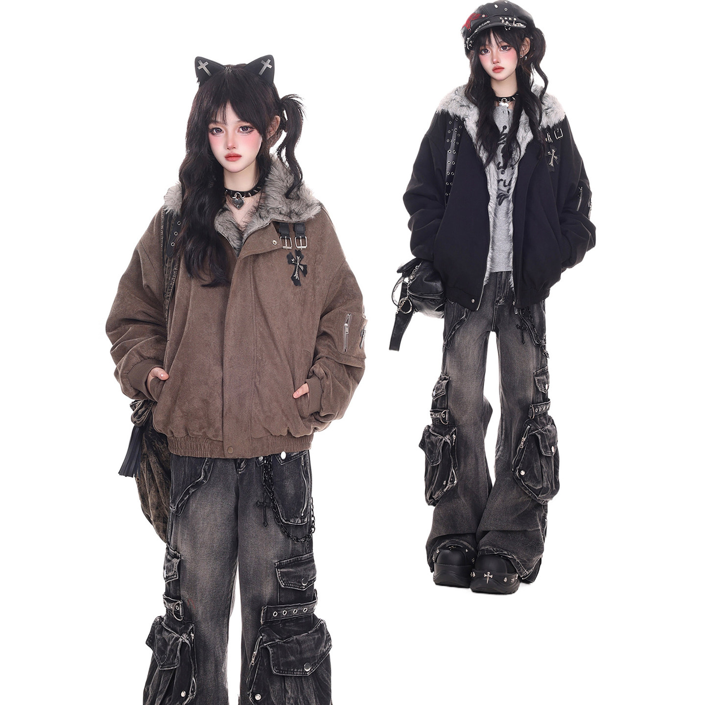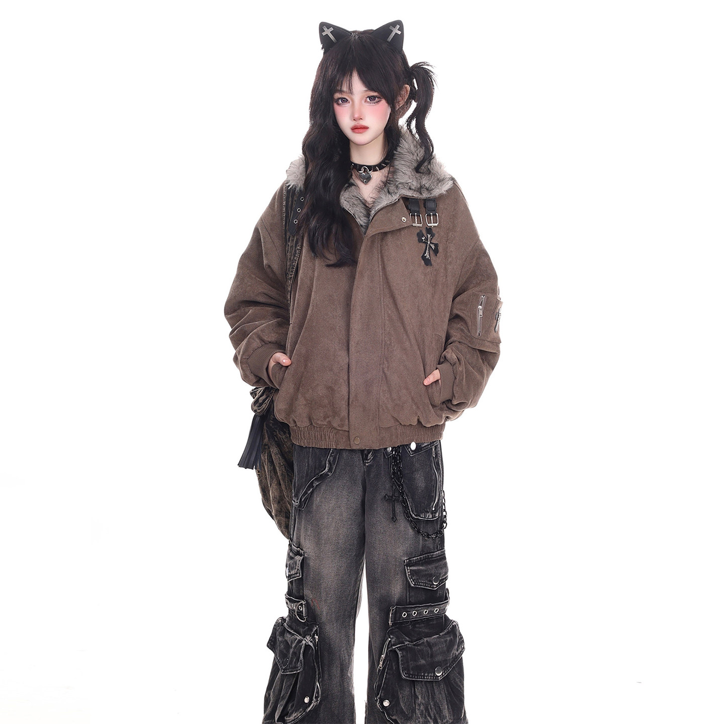 300斤大码女装复古美拉德保暖棉服女胖mm高级感毛领加厚棉衣外套