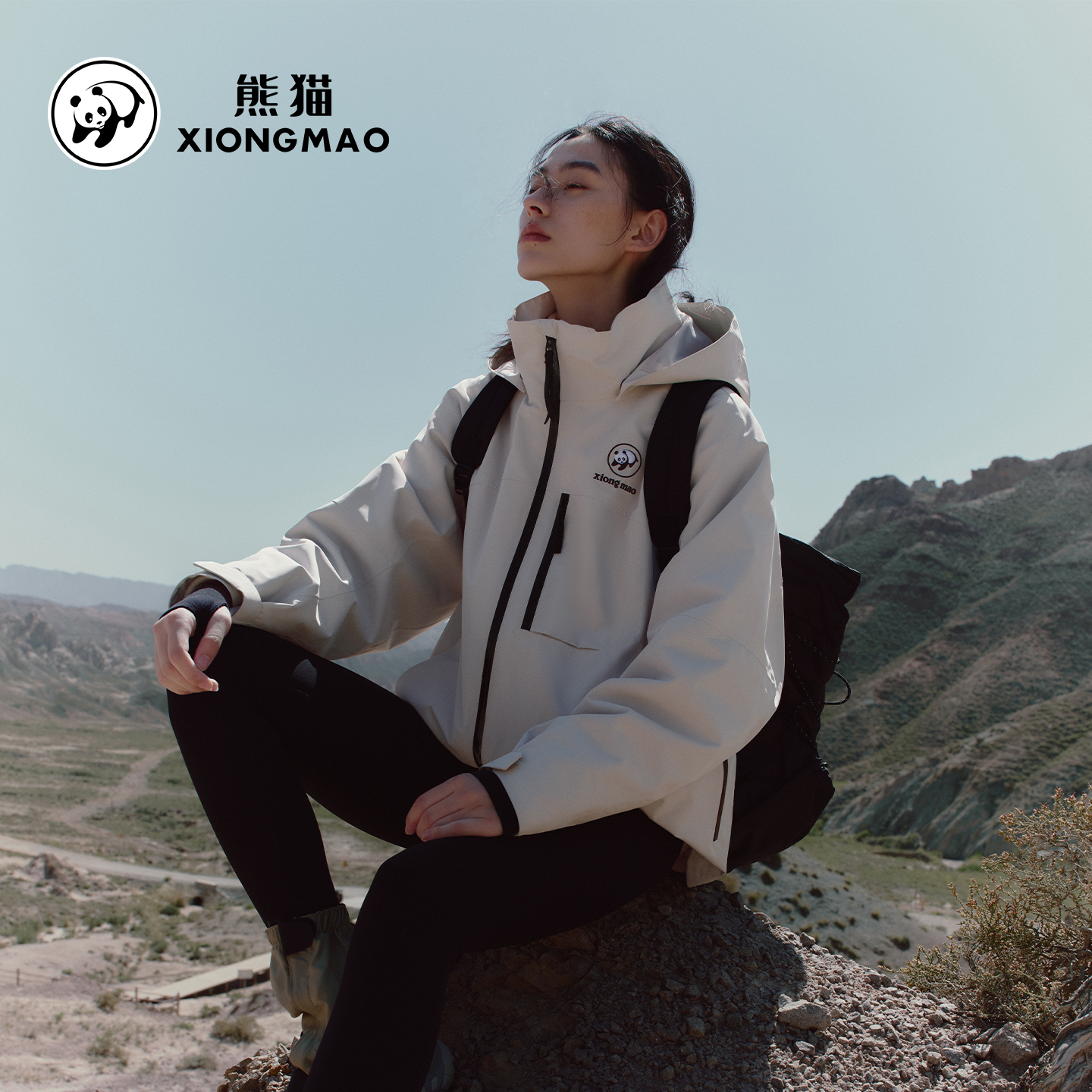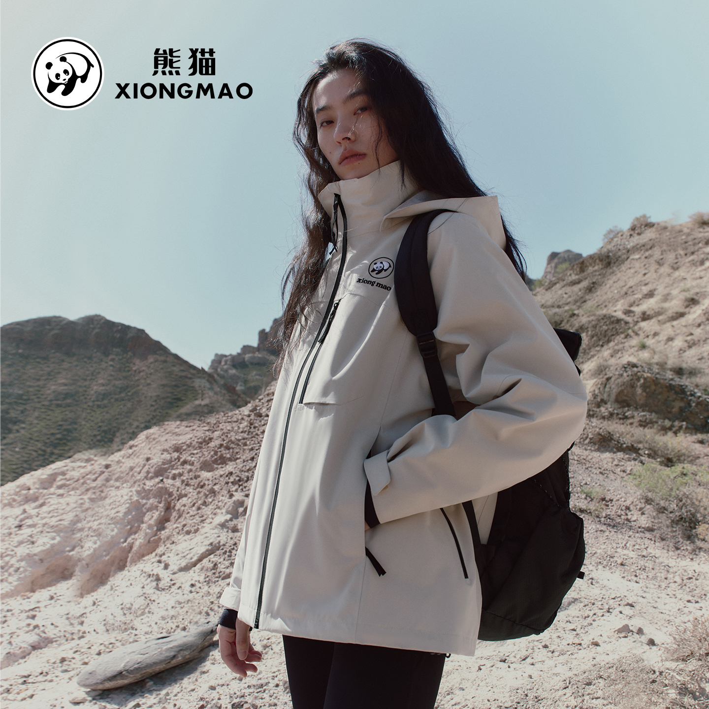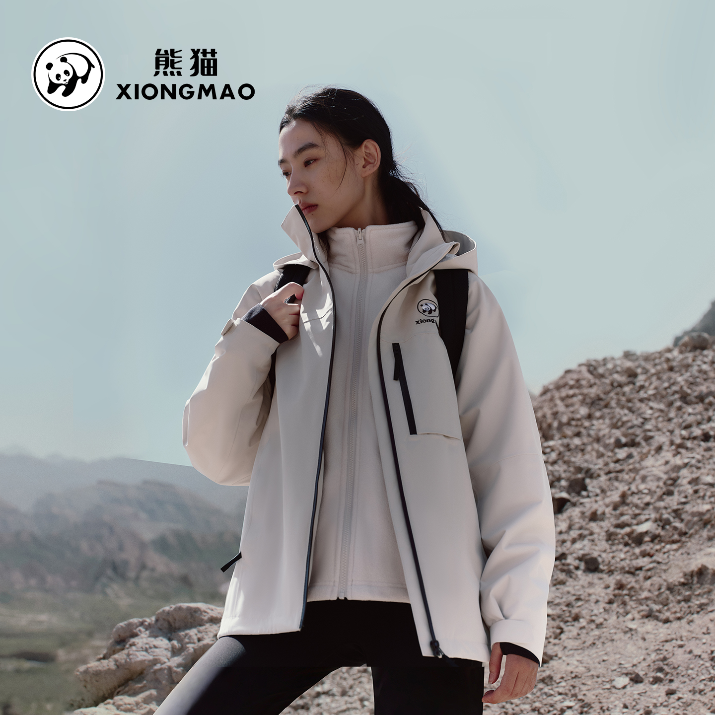 骆驼熊猫三合一冲锋衣女2025新款户外防风防水加绒保暖外套男黑色