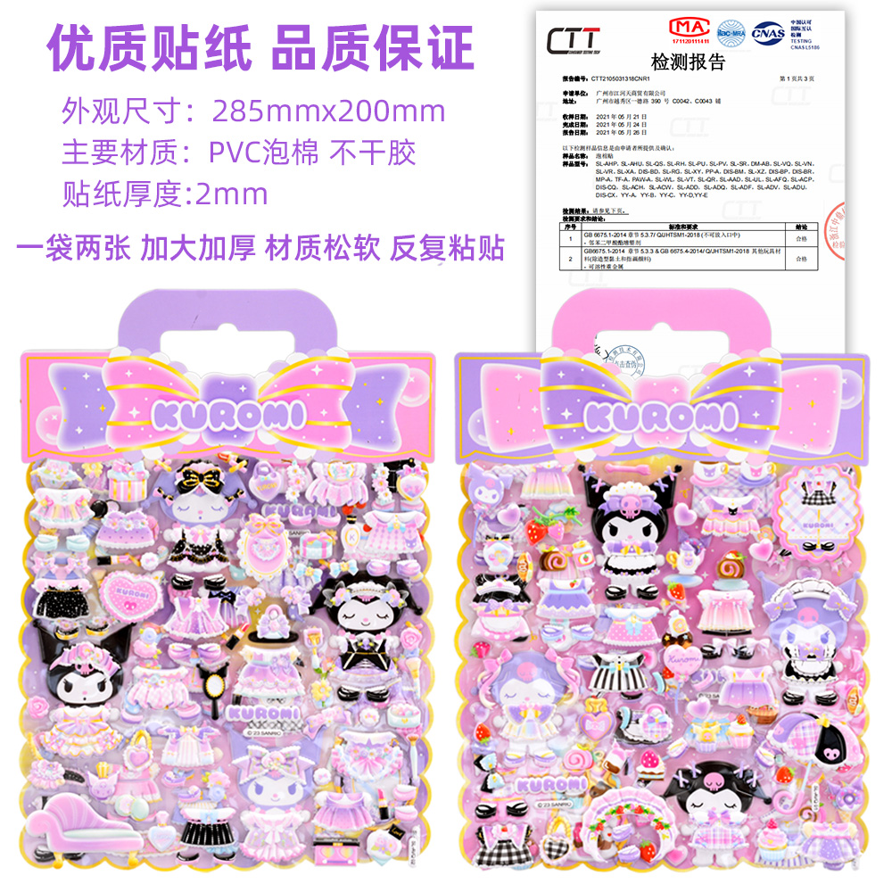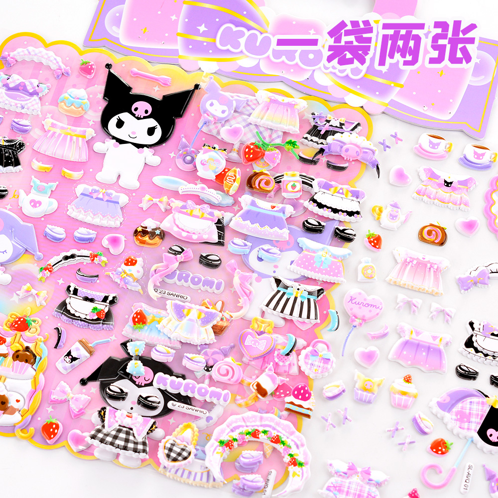 库洛米换装贴纸三丽鸥酷洛米儿童公主百变穿衣服3d泡泡女孩贴贴画