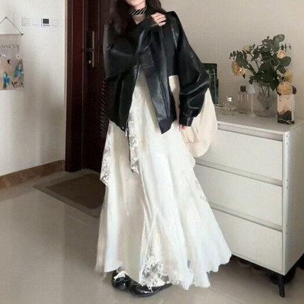 白色不规则蕾丝压褶重工半身长裙大码春季流行风格梨形伯克利裙子