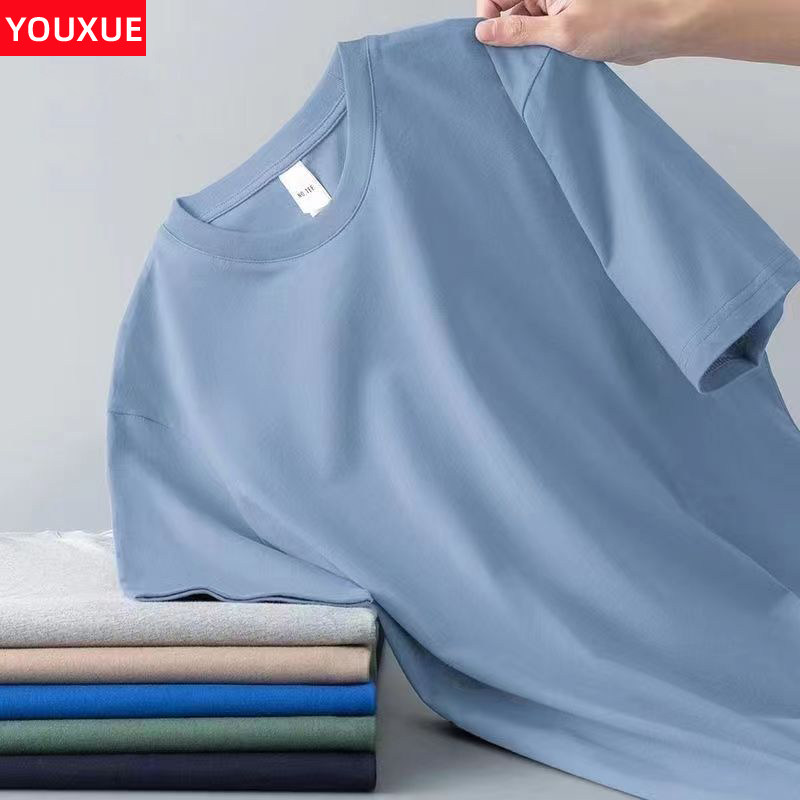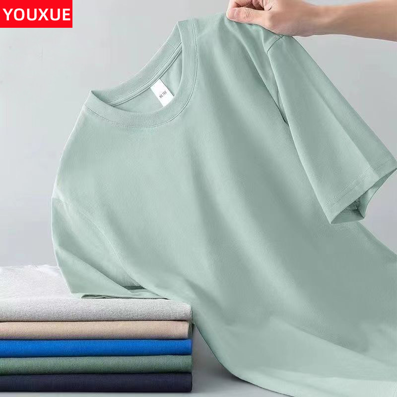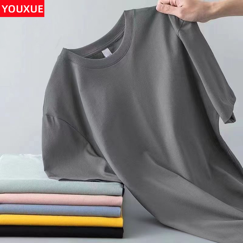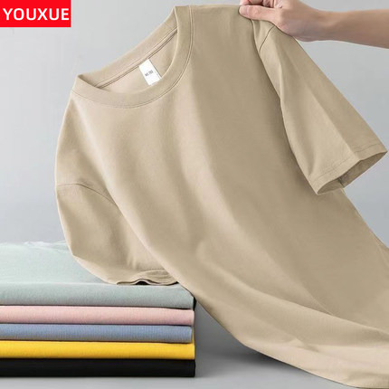 潮牌夏季纯色圆领短袖t恤男宽松大码百搭韩版上衣打底衫半袖体恤