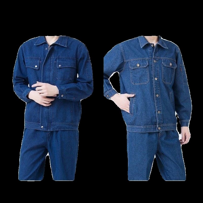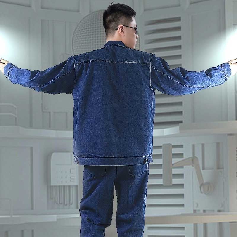纯棉多口袋工作服加厚防烫牛仔男套装烧不烂上衣电焊工地劳保耐磨
