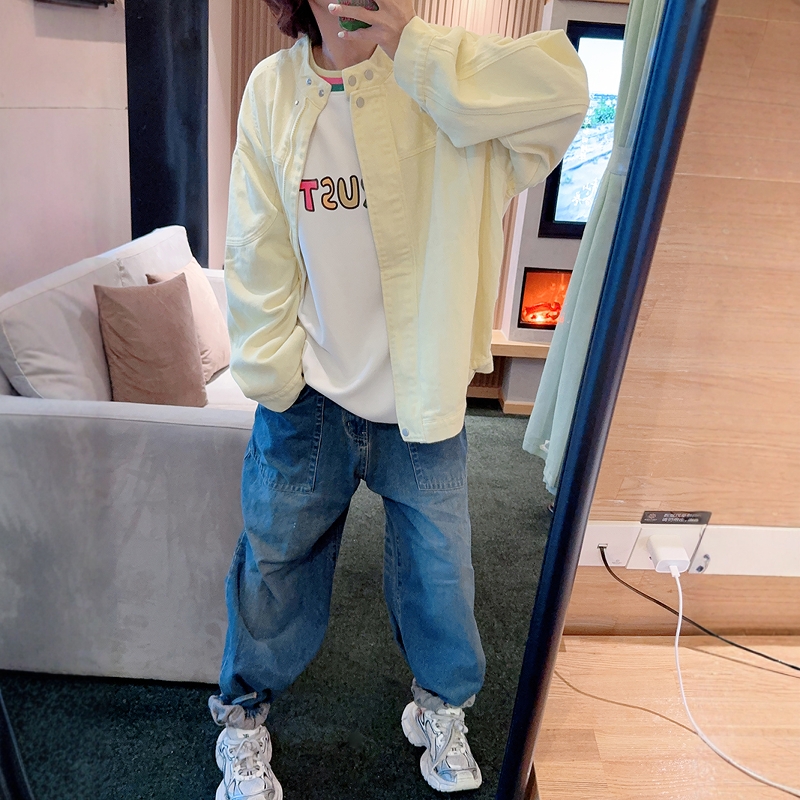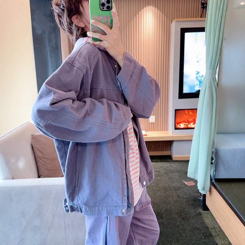 AMYOYOJA新款 超有型水洗面料超飒机车领后背刺绣下摆系扣外套女