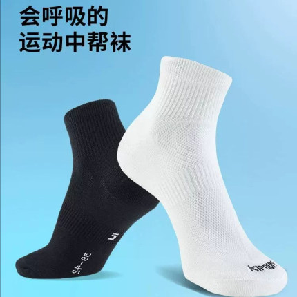 迪卡侬跑步袜男袜吸汗透气速干中筒薄款袜子运动袜短袜3双装OVA1