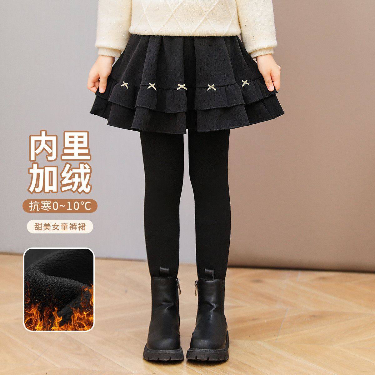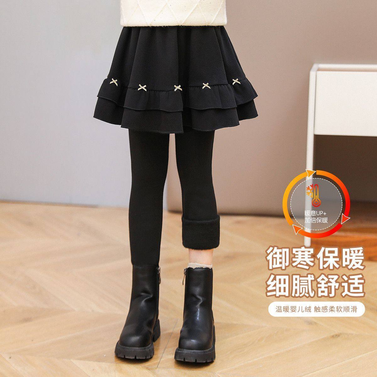 女童裤裙加绒冬装新款儿童假两件裙裤外穿中大童一体绒加厚打底裤