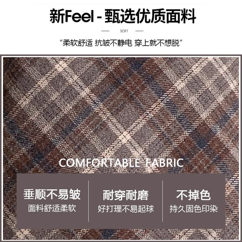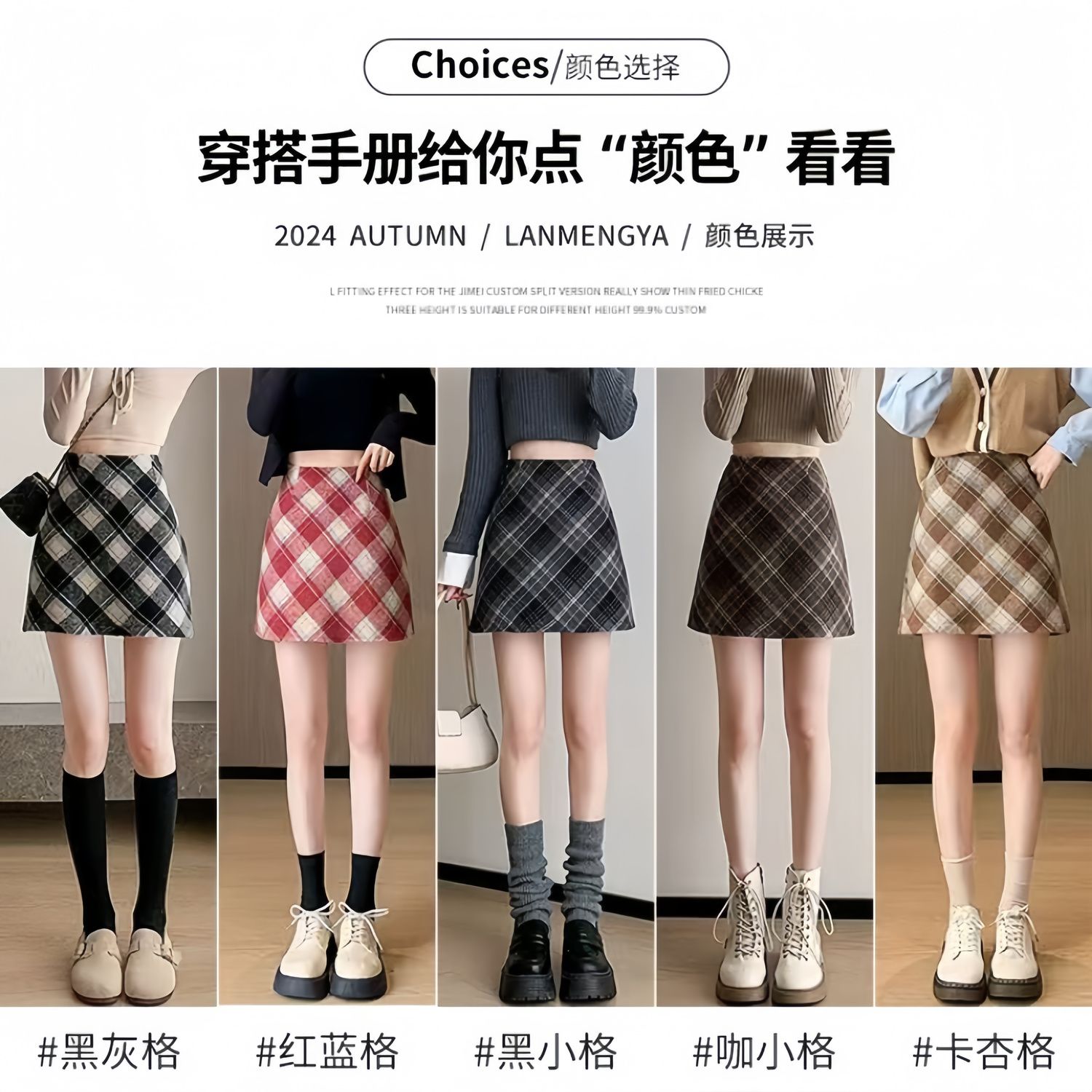 咖色毛呢半身裙女秋冬2024新款高腰显瘦慵懒垂感学院风格子包臀裙