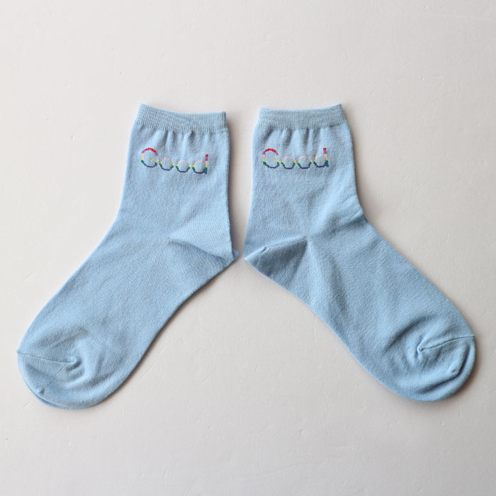 日单 字母装饰彩色女士中筒袜 四季袜 2色入