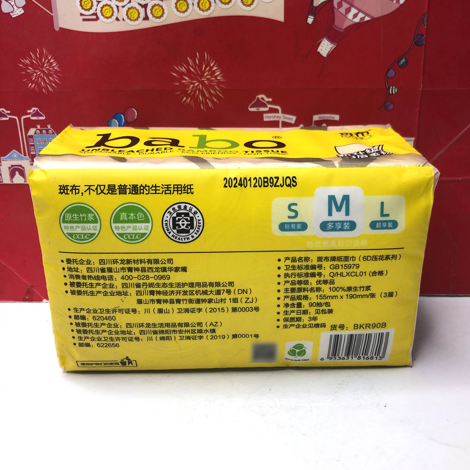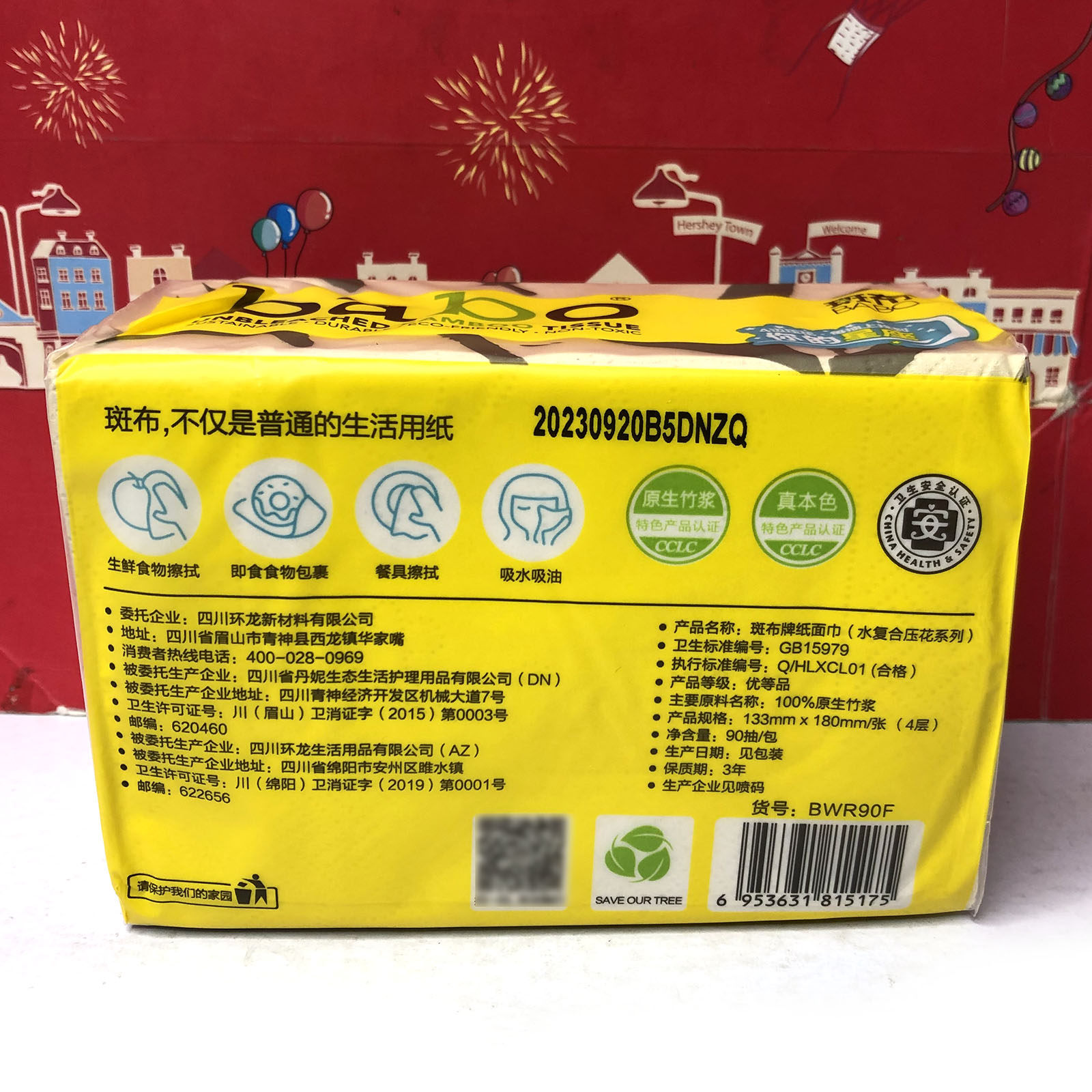 特价 斑布原生竹浆抽纸13cm*18cm*90抽3 层家用面巾纸巾