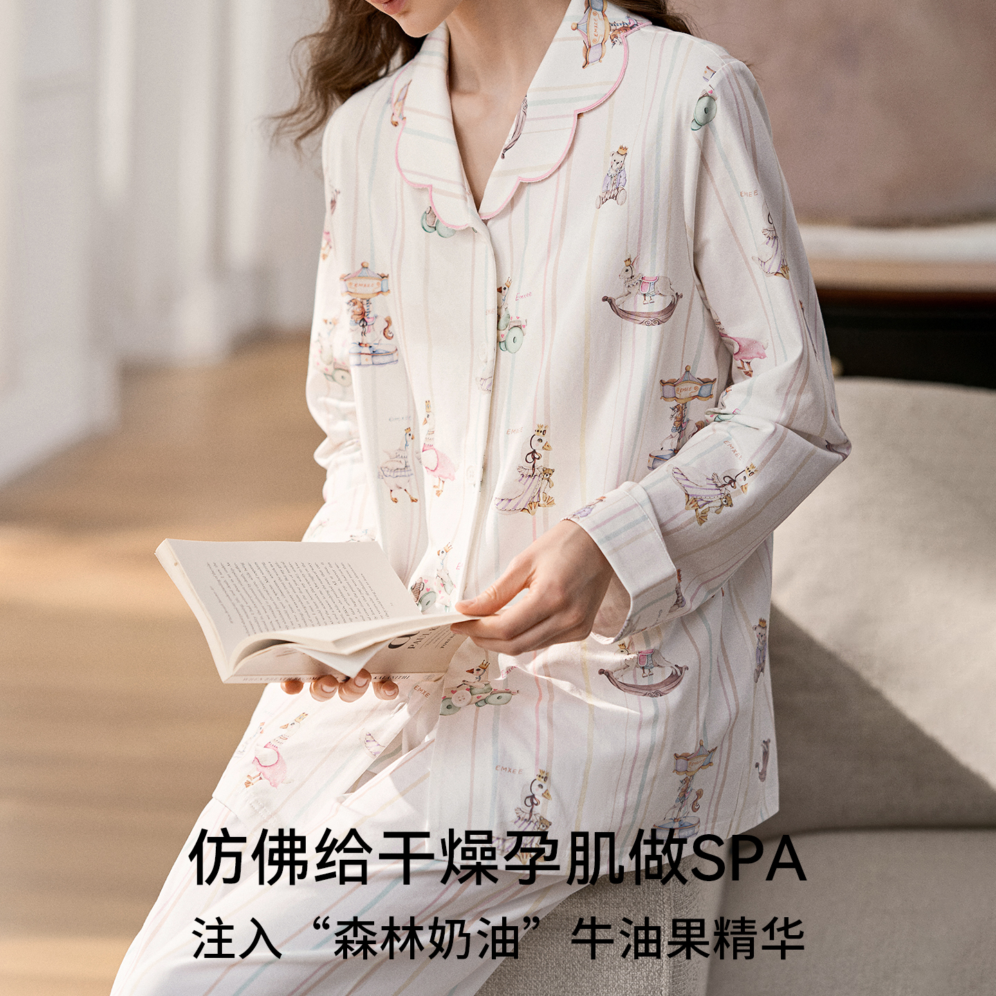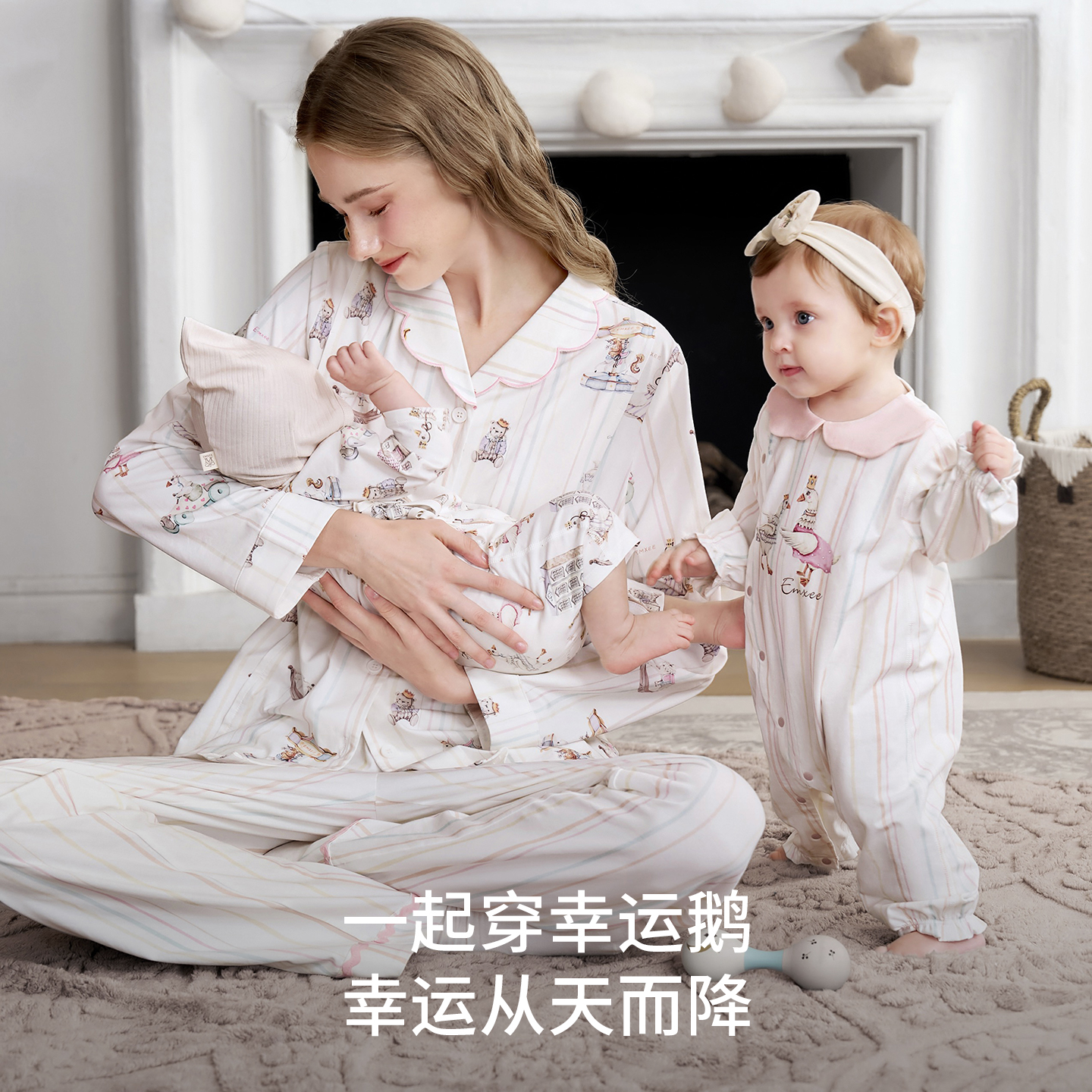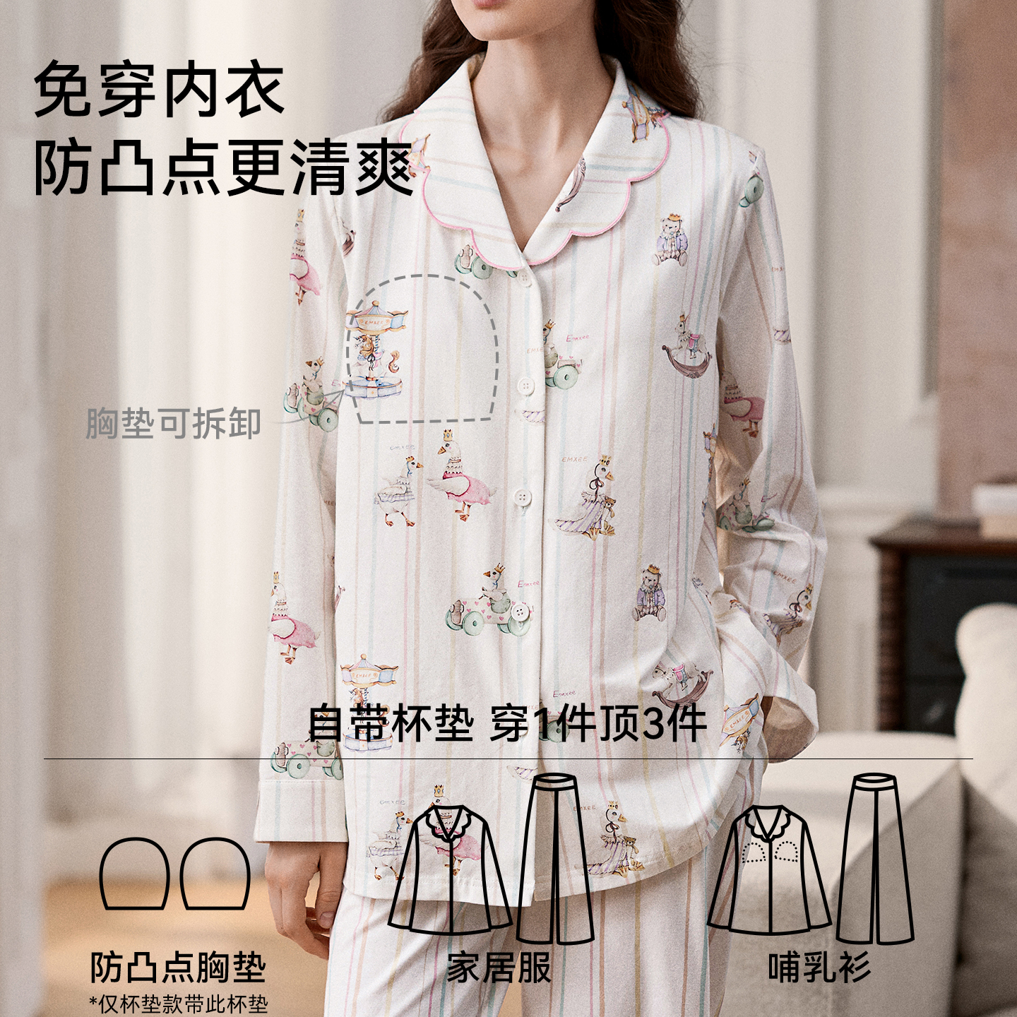 嫚熙幸运鹅秋冬果柔棉纯棉带胸垫睡衣哺乳孕妇产后月子服家居服
