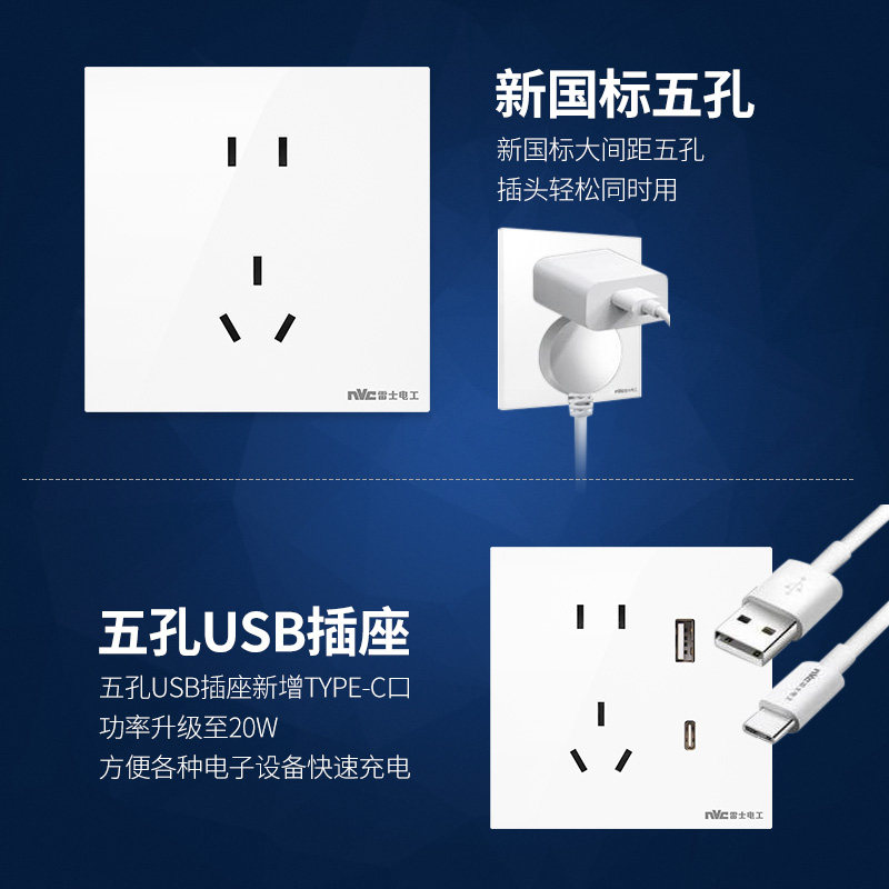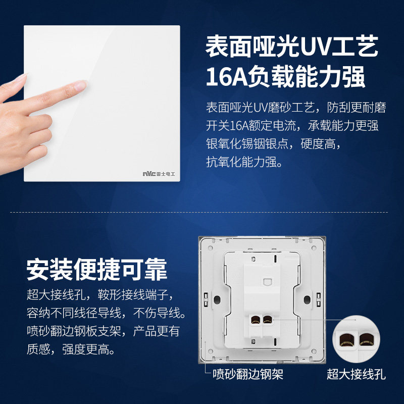 雷士电工86型开关插座面板墙壁电源开关插座Q18系列釉白 超薄款