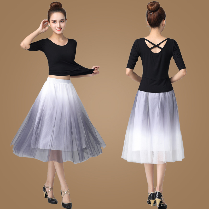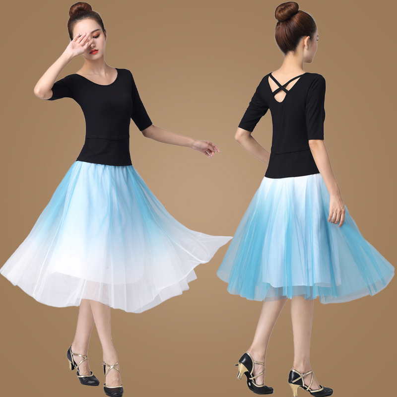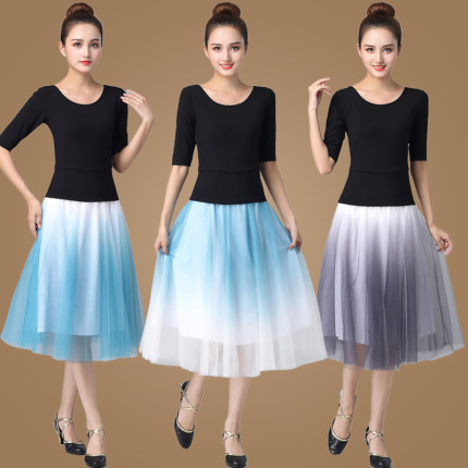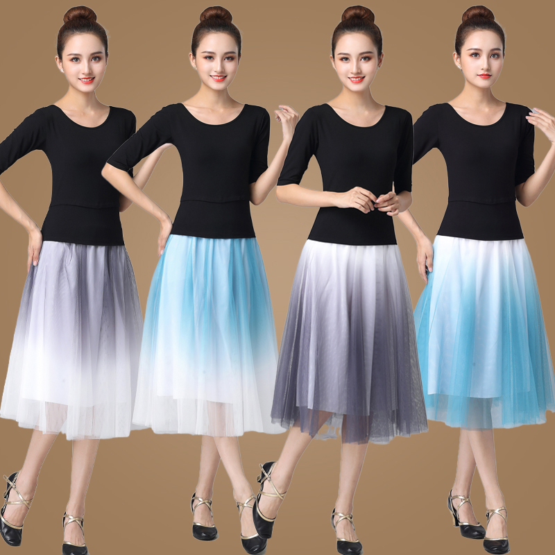 现代舞广场舞蹈服装套装纱裙演出服女春夏季新款中袖跳舞衣练功服