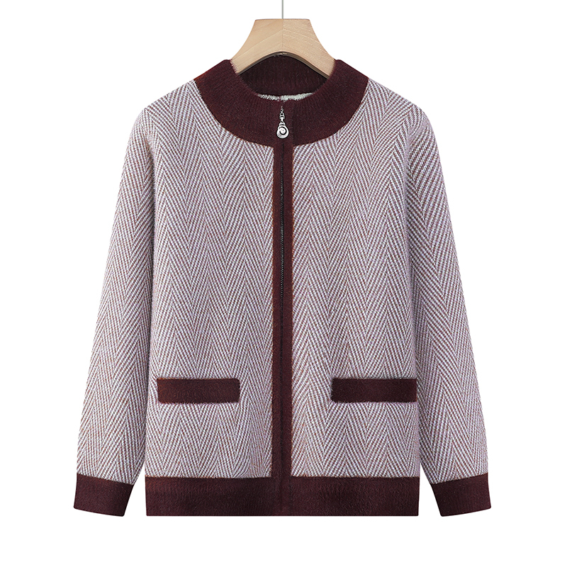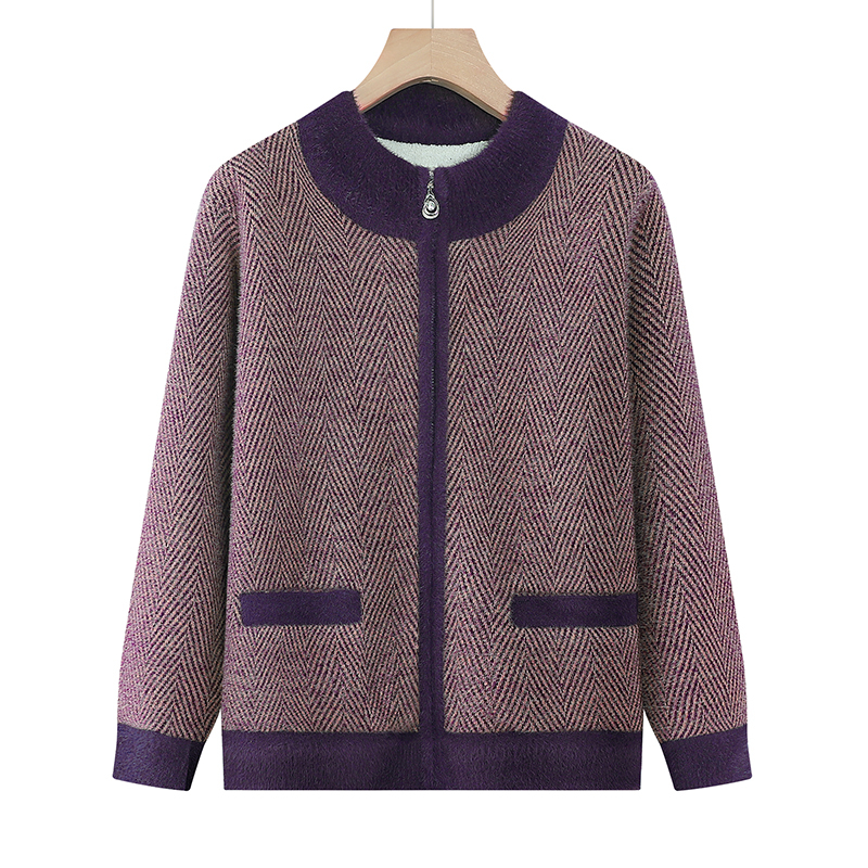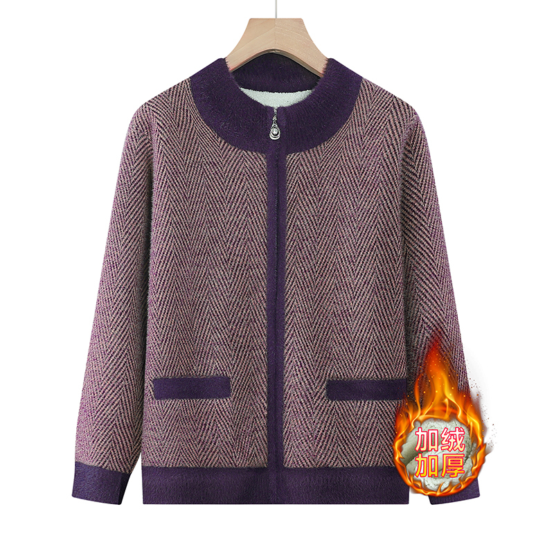 妈妈装秋冬季加绒加厚毛衣外套中老年人女装保暖针织衫老太太衣服