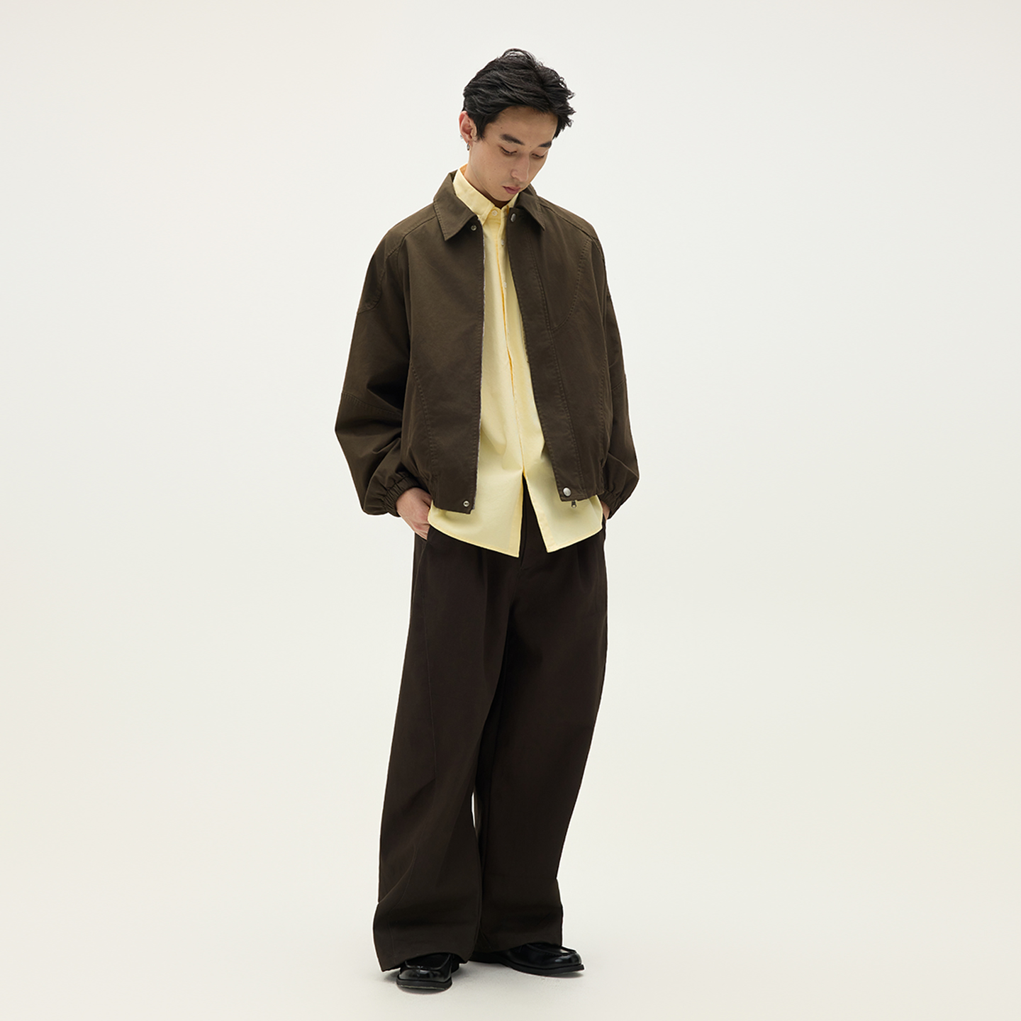 SOMENUM森林25AW「拼接垫肩」老钱休闲通勤外套男女水洗条纹夹克