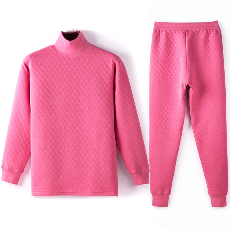 高领保暖内衣女士加厚中老年人秋衣秋裤纯棉妈妈三层全棉毛衫套装
