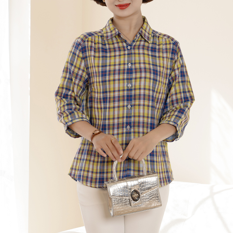富木双层纱衬衫中袖纯棉衬衣舒适透气清新女士上衣WZ-1511-1-R2