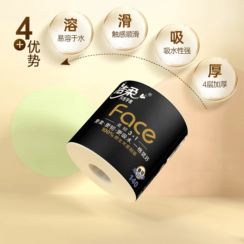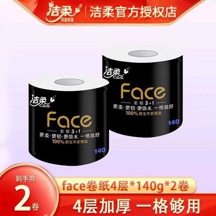 洁柔黑Face有芯卷纸4层140克家用厕纸大卷卷筒纸吸水亲肤卫生纸