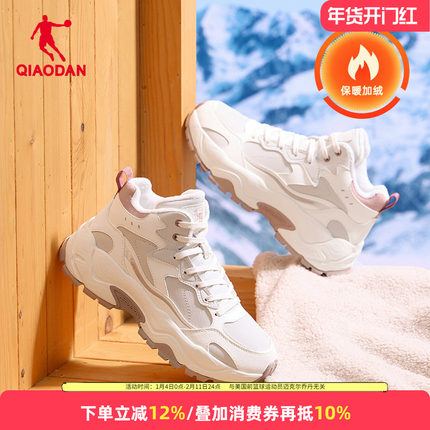 乔丹女鞋加绒运动鞋女2025冬季高帮保暖大棉鞋皮面防水户外雪地鞋