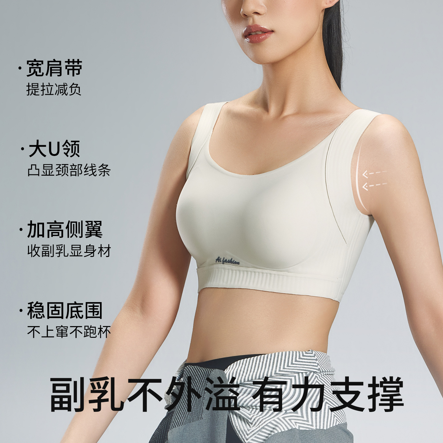 高强度运动内衣女透气防震桑蚕丝