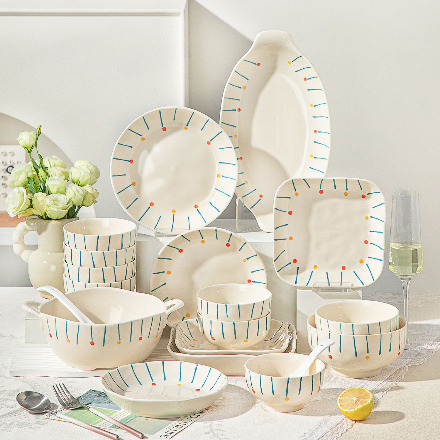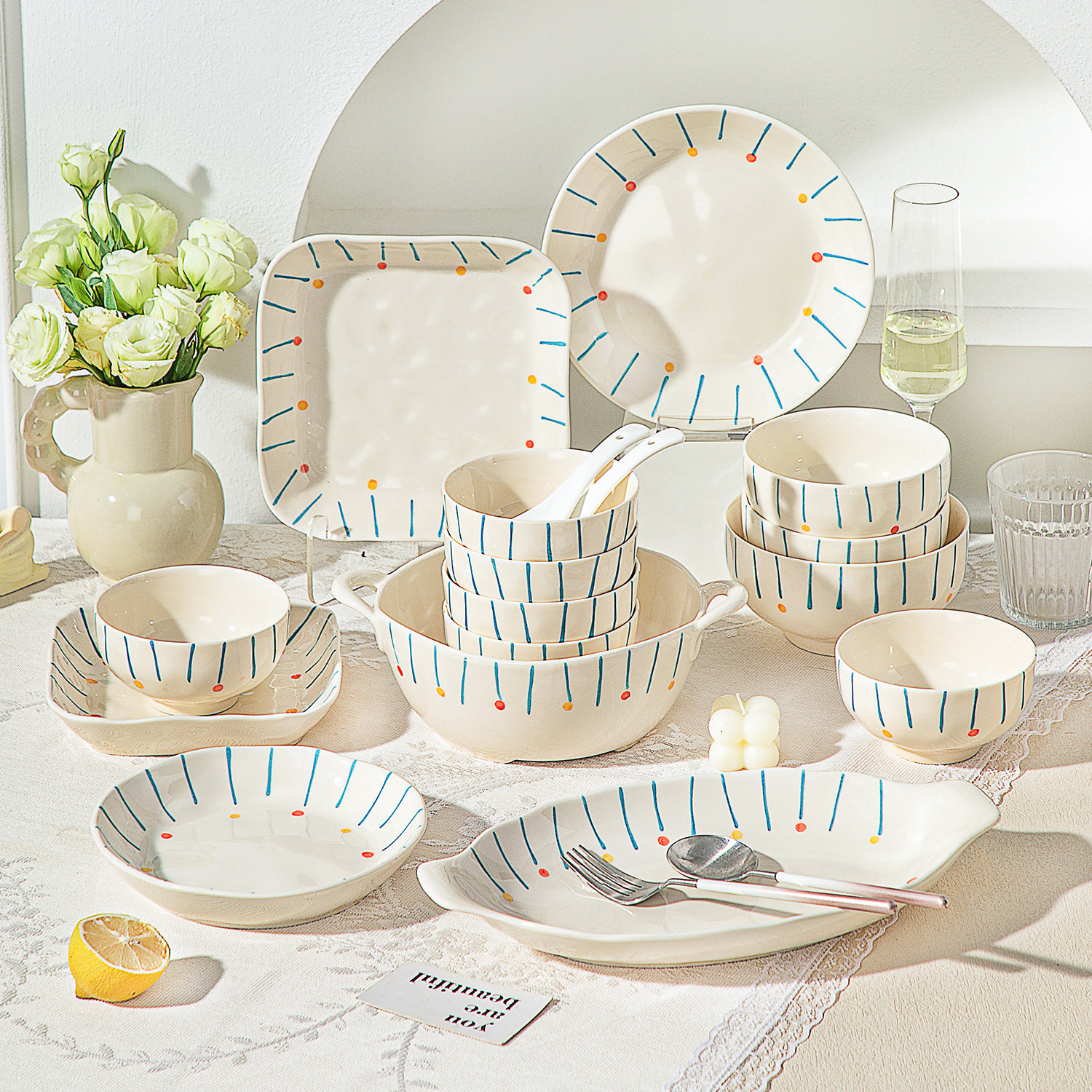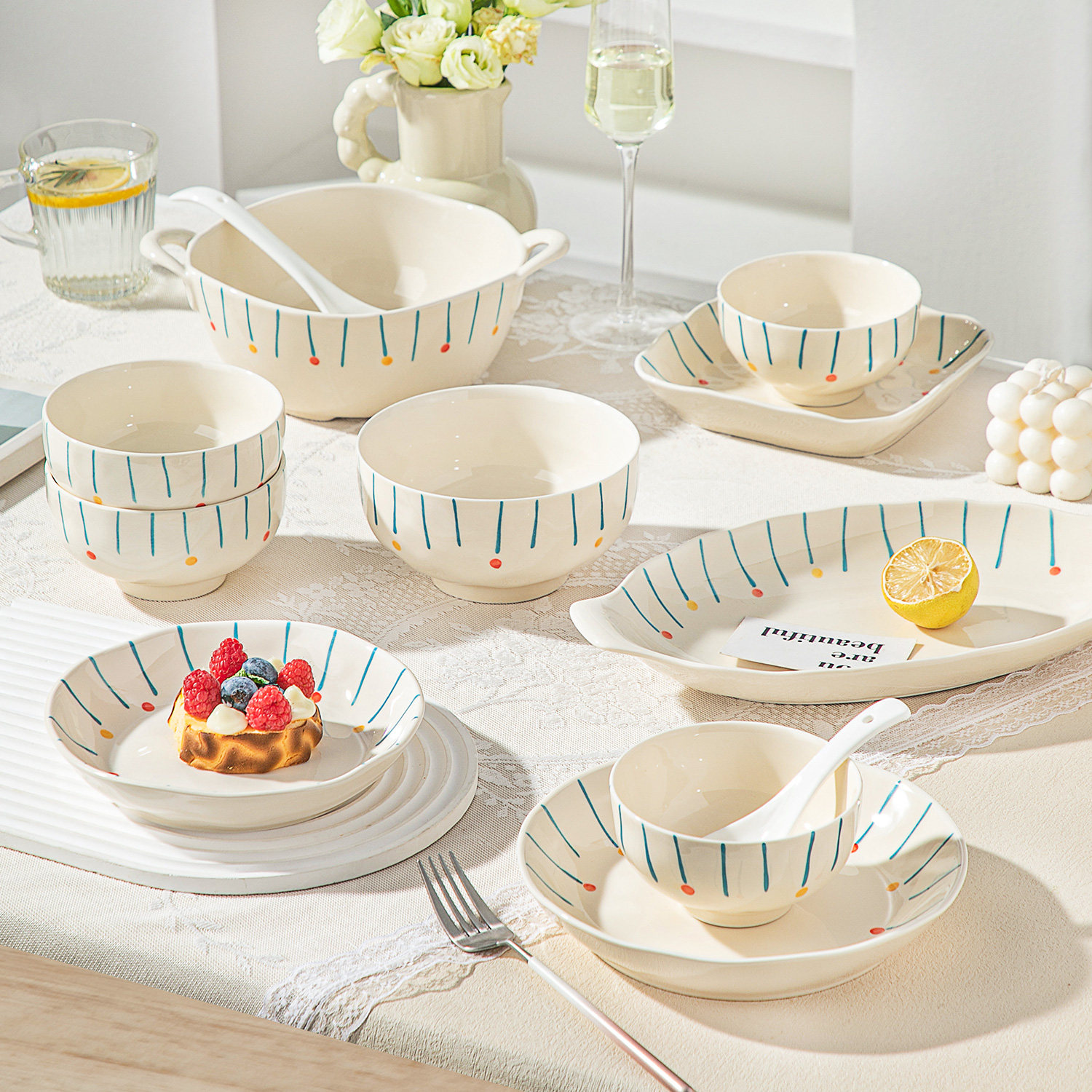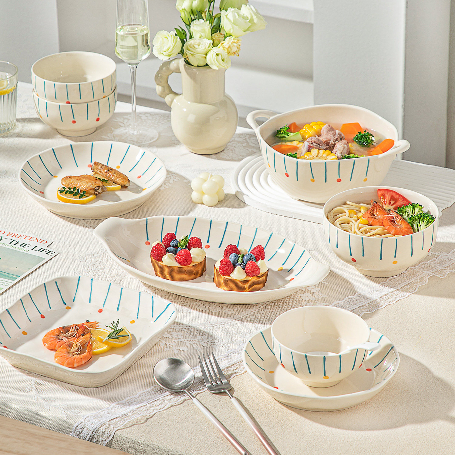 ins釉下彩陶瓷餐具2025新款高颜值碗筷碗盘碗具乔迁碗碟套装家用