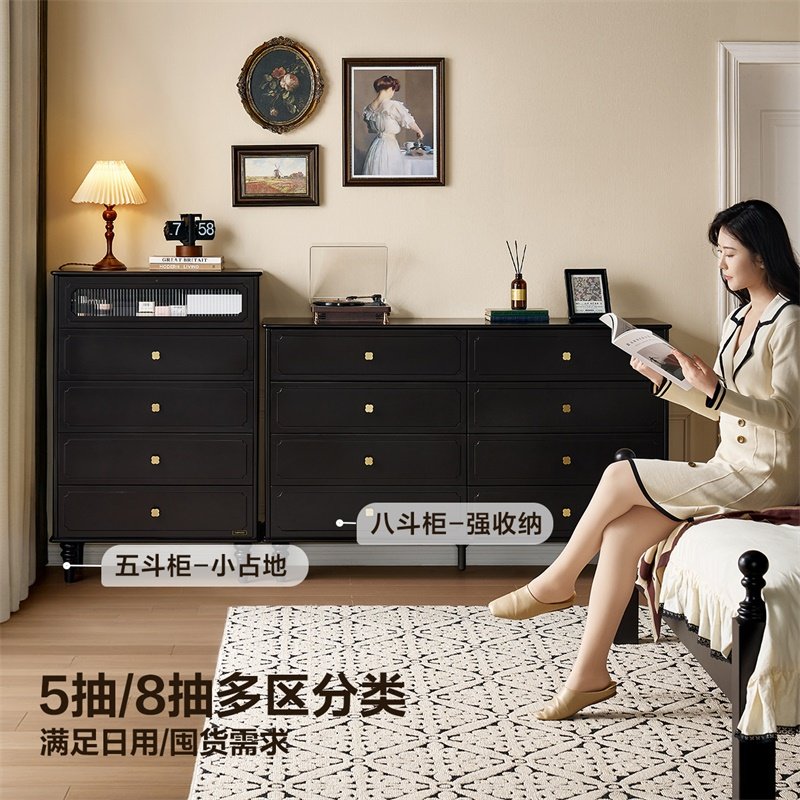 全友家居Q美式复古五斗柜中古风客厅靠墙储物柜卧室置物柜