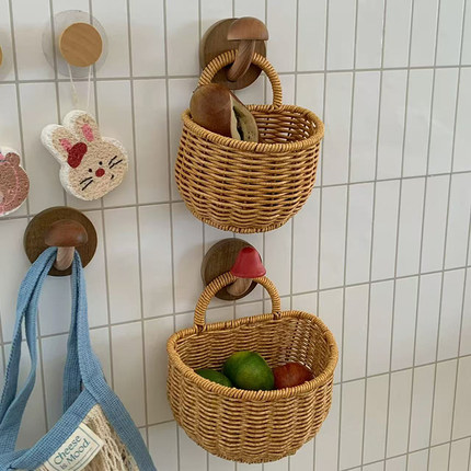 厨房姜蒜收纳筐壁挂仿藤编织篮手提小篮子鸡蛋筐水果篮宿舍零食筐