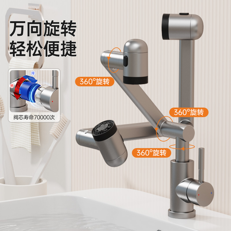 欧派卫浴洗手盆水龙头卫生间洗脸盆万向旋转机械臂冷热面盆水龙头