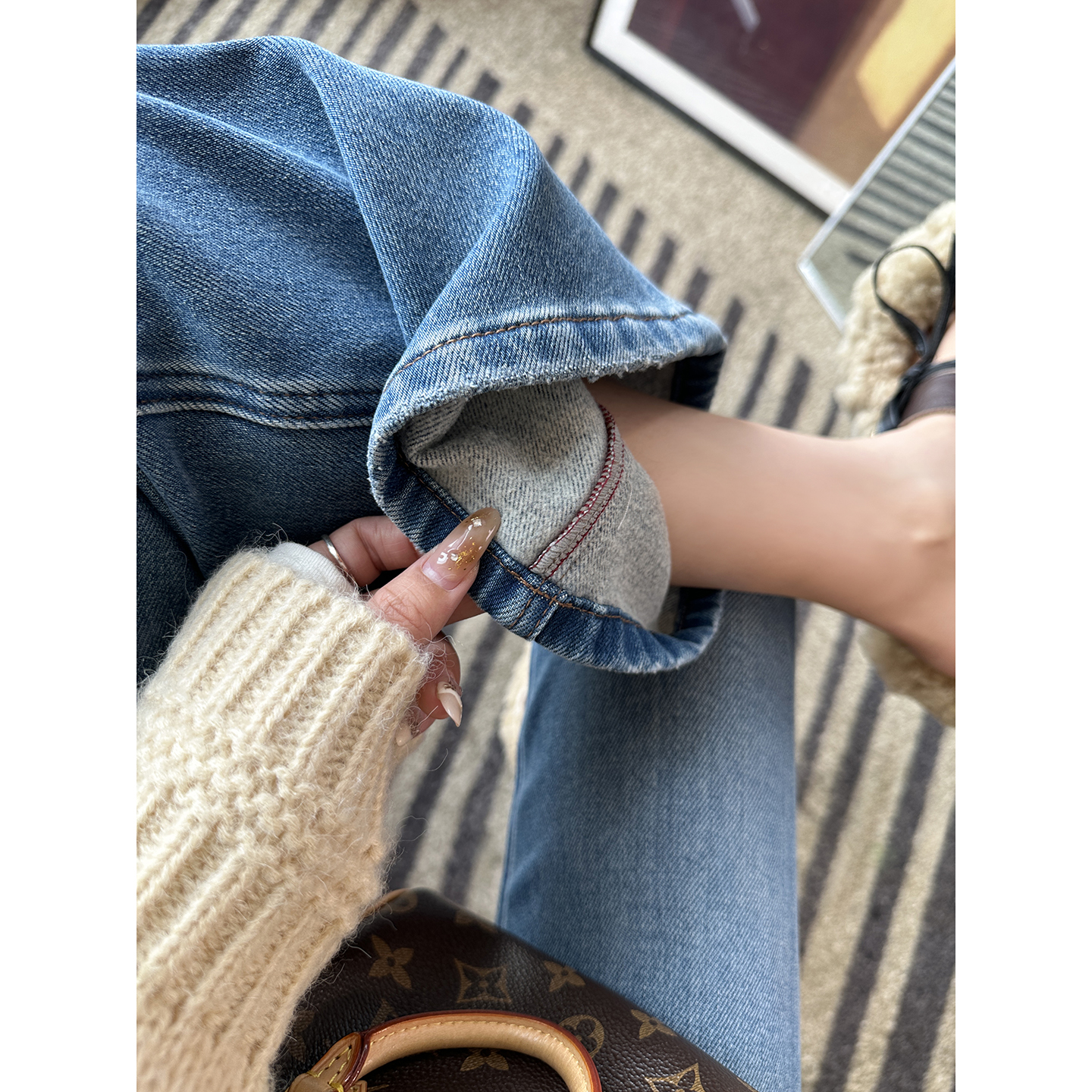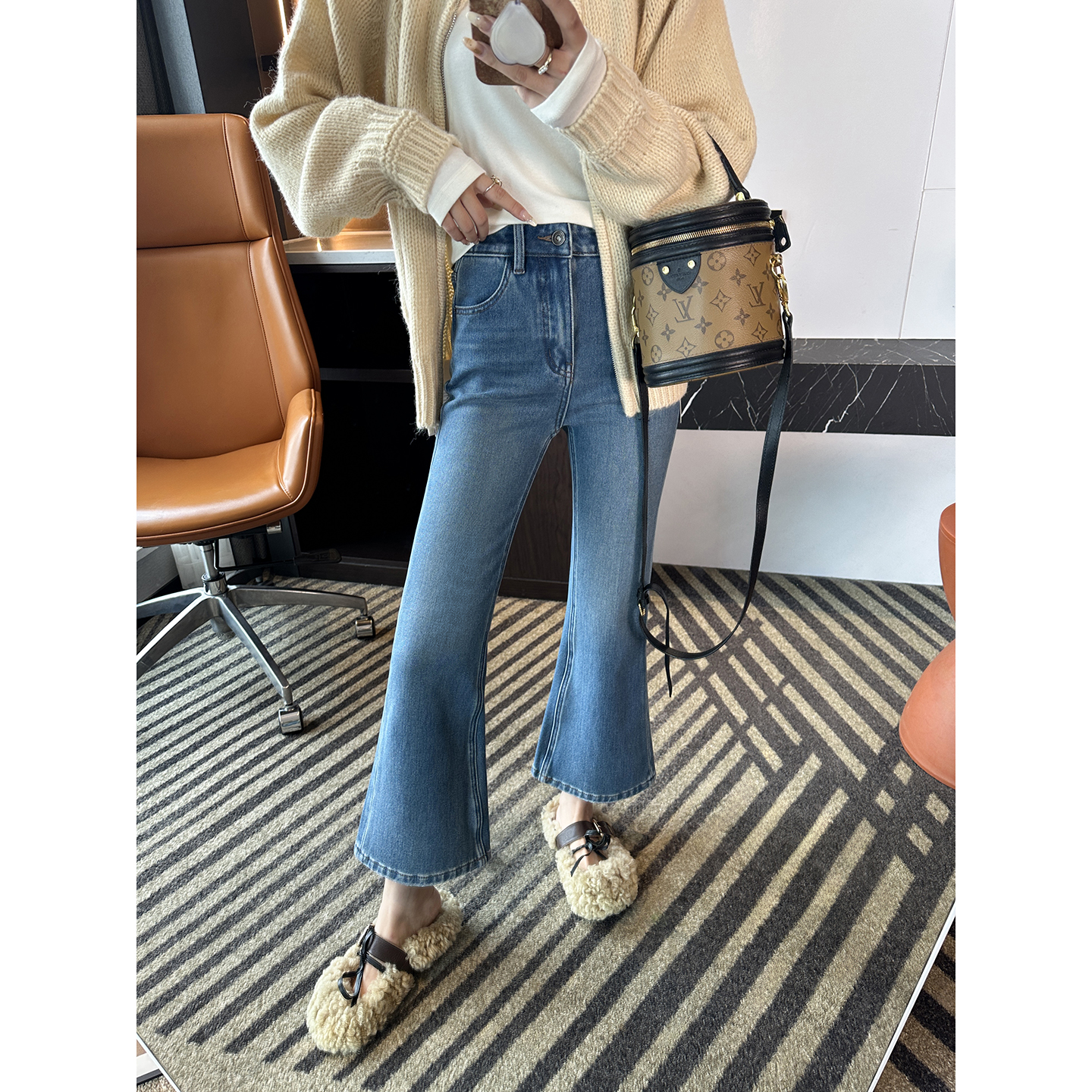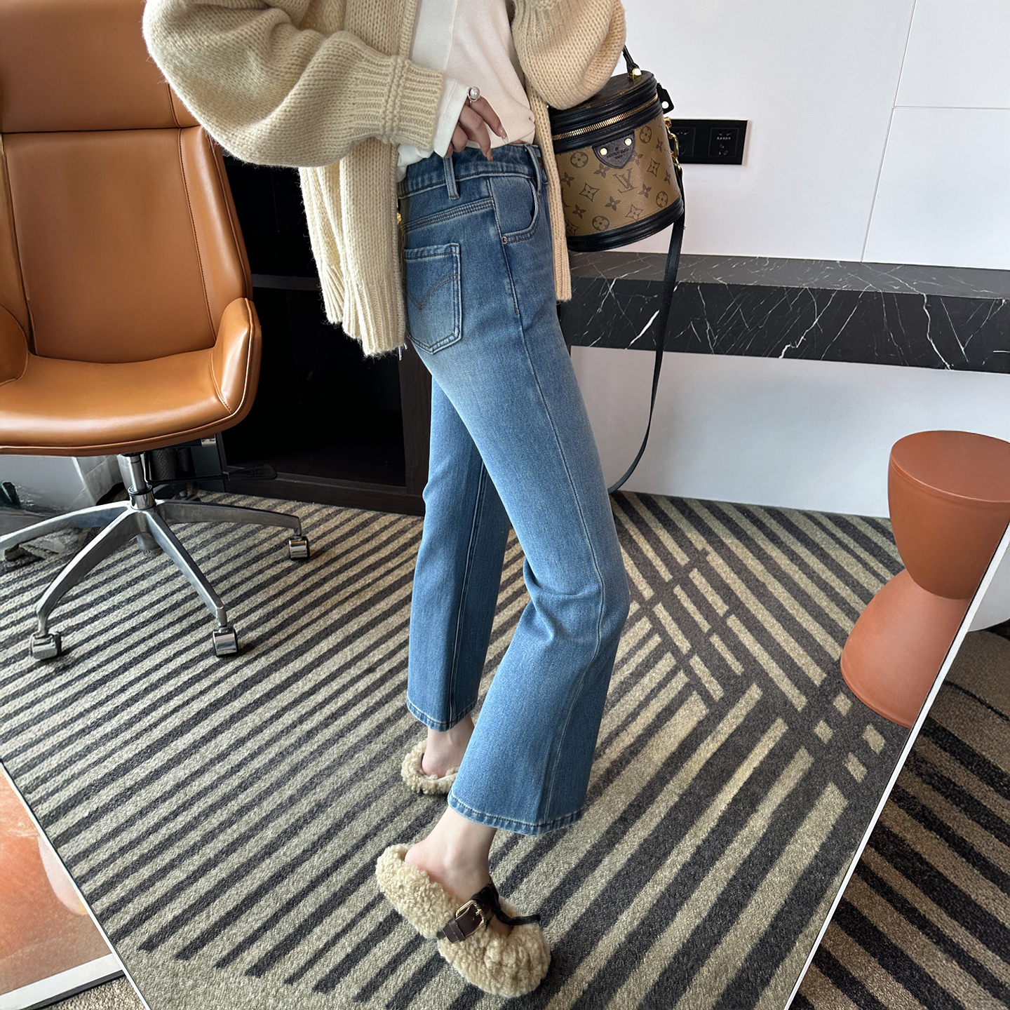 wan美腰臀比!~加绒微喇叭牛仔裤